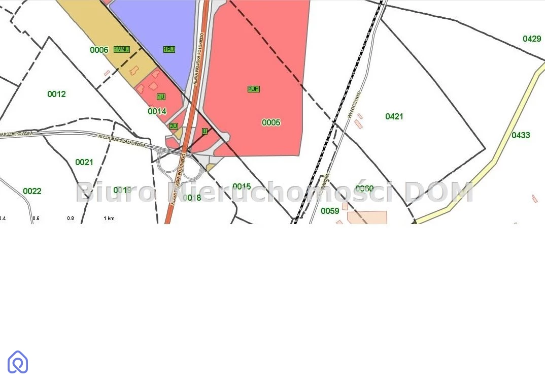 Działka o powierzchni 32000m2 szeroka 137m i długa 255m, objęta planem zagospodarowania przestrzennego zgodnie zUCHWAŁĄ NR 587/XXXII/2013 RADY MIASTA CZĘSTOCHOWY z dnia 28 lutego 2013 r. w sprawie uchwalenia miejscowego planu zagospodarowania przestrzennego obszaru położonego w Częstochowie w dzielnicy Wyczerpy - Aniołów w rejonie Alei Wojska Polskiego oraz ulic Makuszyńskiego i Solnejobszar o pow. około 17000m2 o symbolu PUH to:
