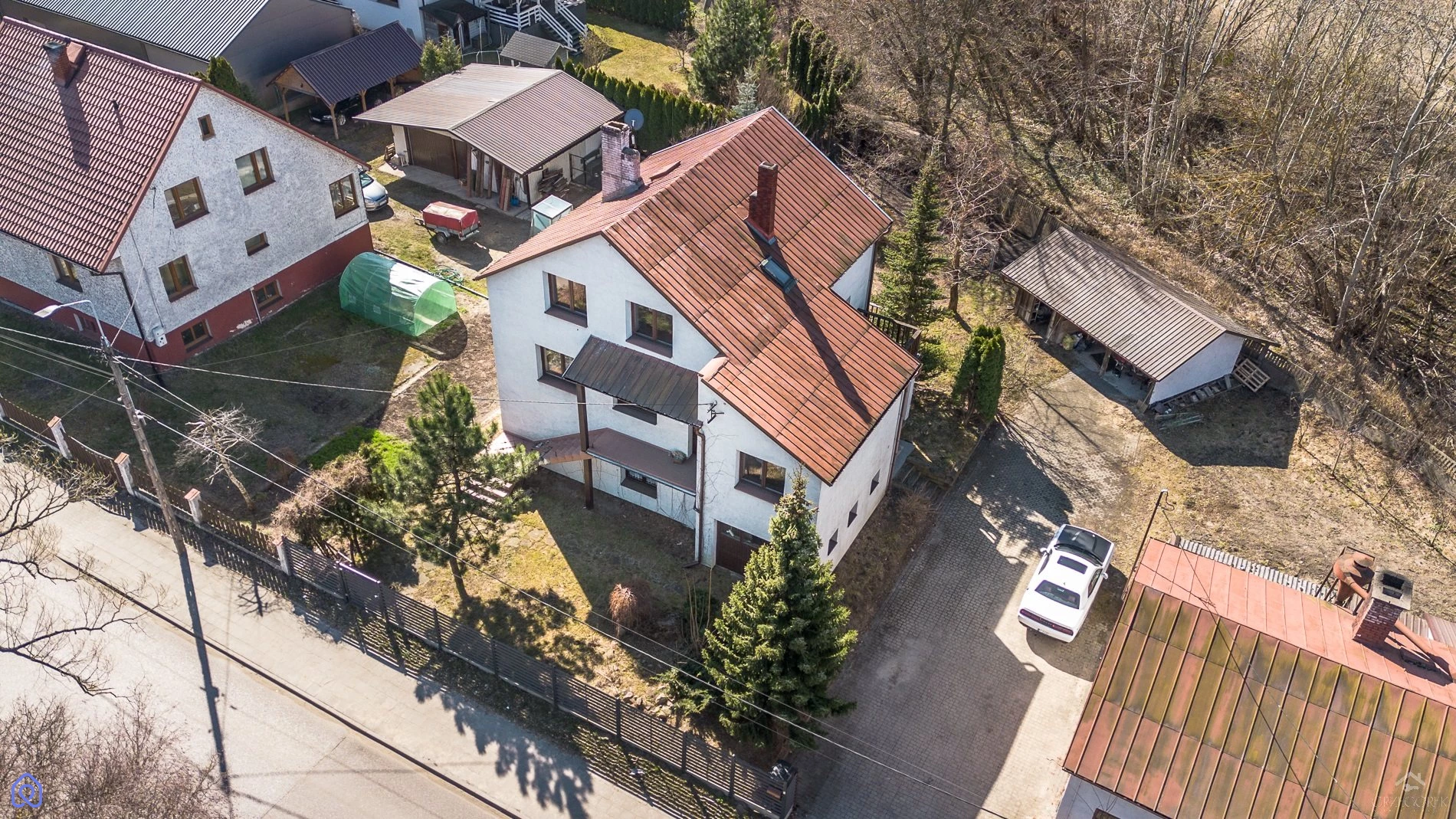 Na działce o powierzchni 1468 m2 znajduje się dom o pow. użytk. ok.300m2, budynek gospodarczy (obecnie stolarnia) ok.300m2 oraz wiata. Dojazd drogą asfaltową, dostępne wszystkie media miejskie (gaz w ulicy). Na działce liczne nasadzenia i krzewy.