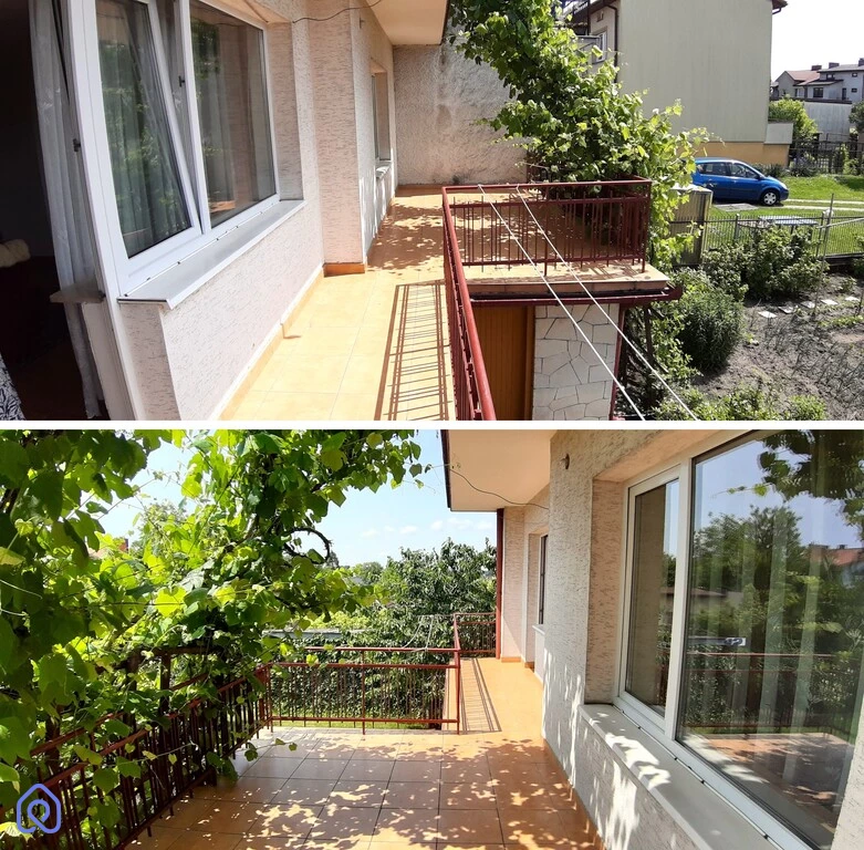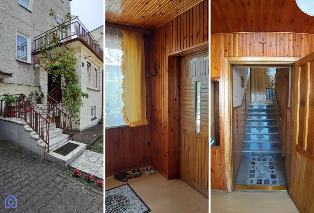 Na parterze: pokój z wyjściem na bardzo duży, południowy balkon obrośnięty winoroślą, sypialnia, oddzielna widna kuchnia, łazienka z ubikacją i przedpokój.