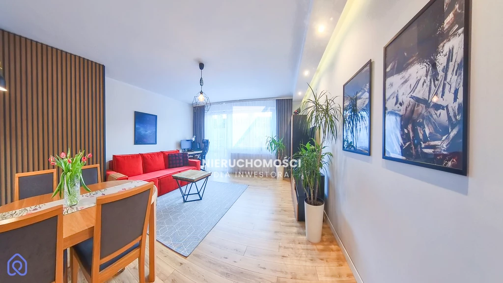 Mieszkanie wyróżnia się nowoczesnym wystrojem i dbałością o detale. Wygodne, funkcjonalne wnętrza zostały zaprojektowane z myślą o maksymalnym komforcie użytkowania. Jasna kuchnia z drewnianymi blatami, pojemnymi szafkami i eleganckim wykończeniem pozwala cieszyć się gotowaniem. Przestronna sypialnia jest urządzona w stonowanych barwach, zapewniając relaks i odpoczynek. Stylowa łazienka z nowoczesnym prysznicem nadaje wnętrzu elegancji. Salon z jadalnią stanowi serce mieszkania, gdzie można spędzać czas z rodziną i gośćmi.