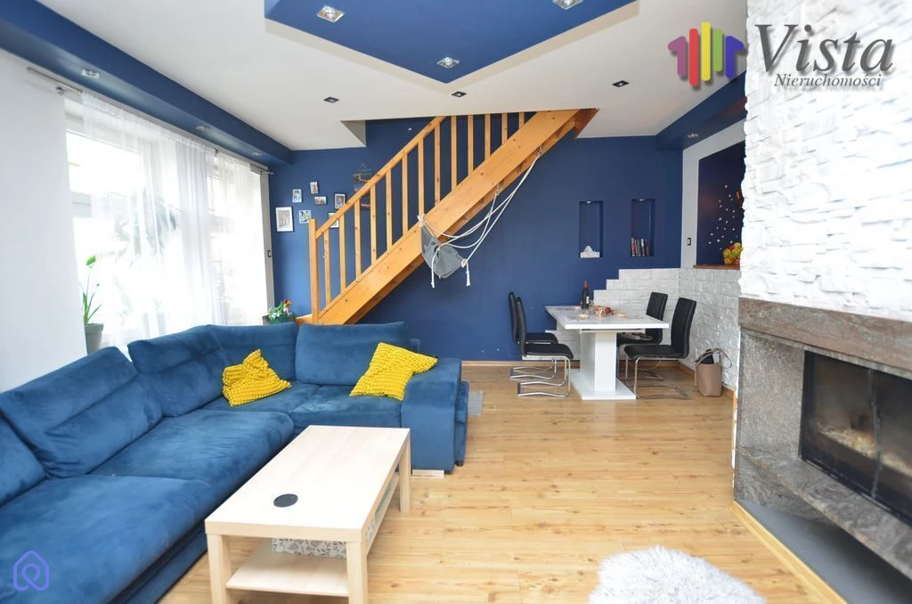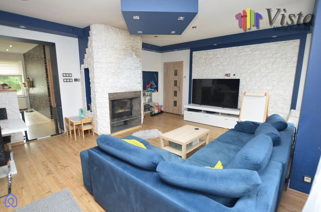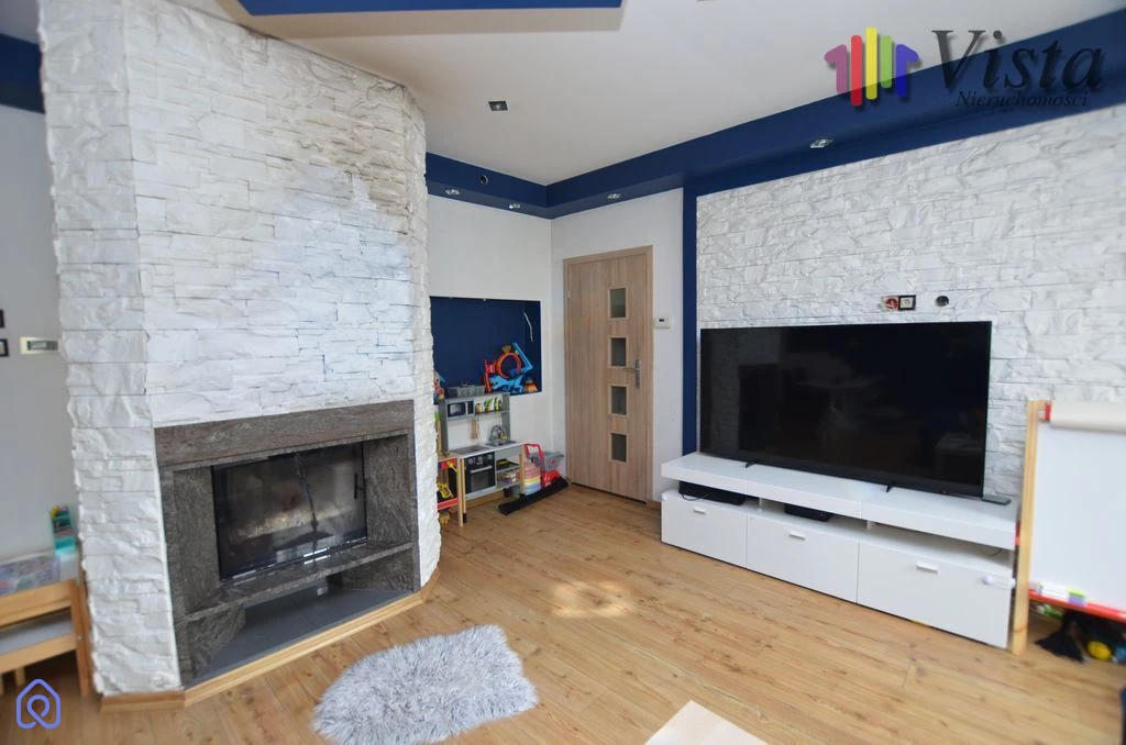 Na pierwszym poziomie znajduje się kuchnia , jasny ,przestronny salon z kominkiem z płaszczem wodnym oraz wydzieloną garderobą, łazienka oraz przedpokój.