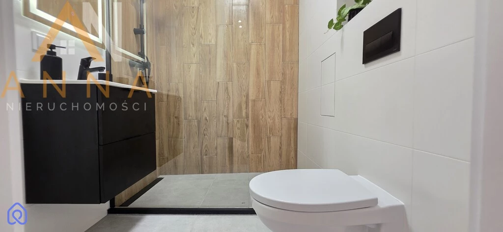 Stan: łazienka z WC z modnym prysznicem bezkabinowym - odpływ liniowy (wymienione piony hydrauliczne)