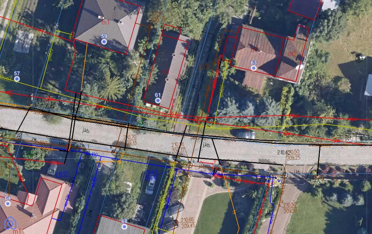 Media: -Energia elektryczna: w działce -Gaz: w działce -Kanalizacja miejska: w drodze tuż przy działce -Wodociąg miejski: w drodze tuż przy działce