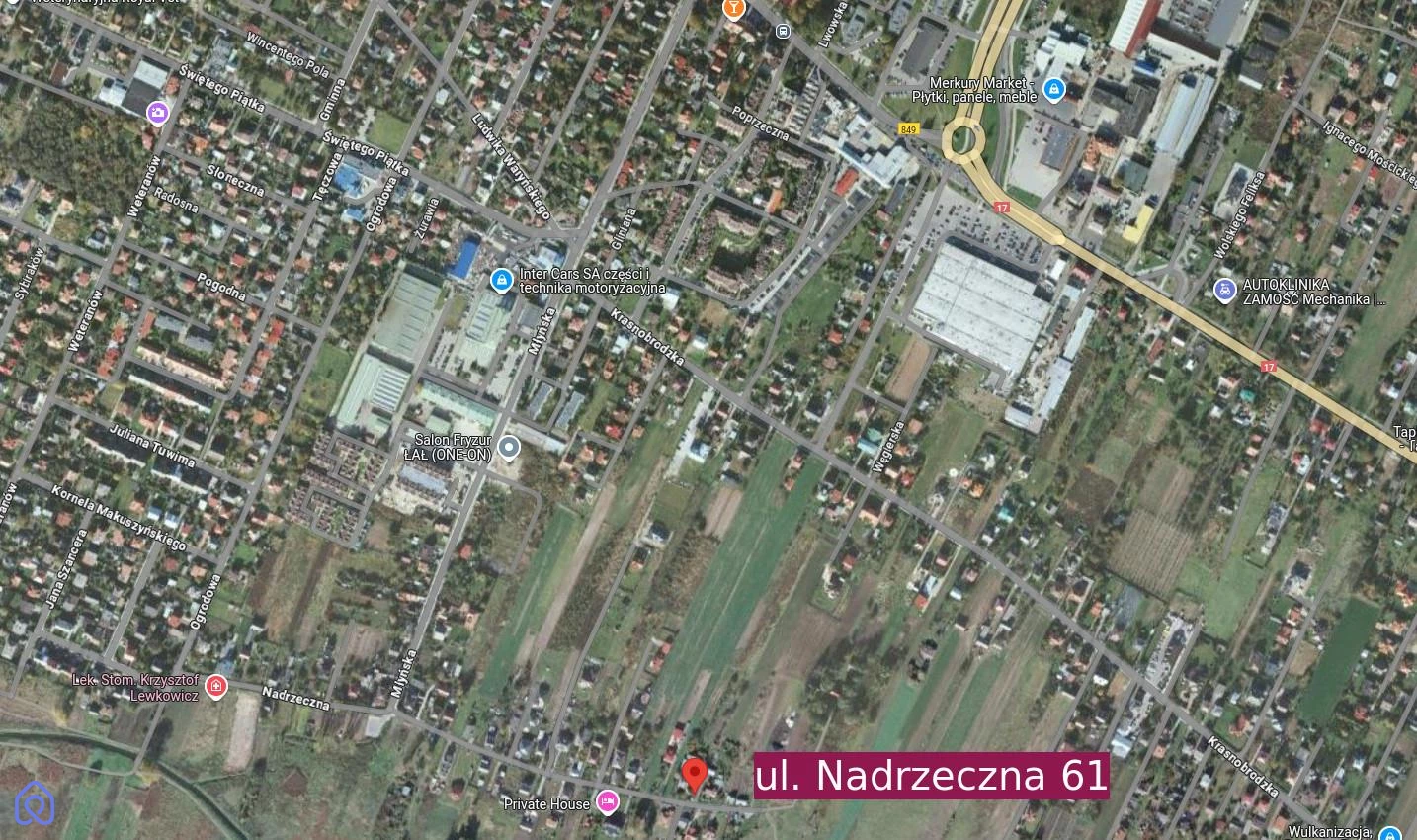 Biuro Nieruchomości DOMOVIA prezentuje ofertę sprzedaży działki budowlanej położonej w Zamościu przy ulicy Nadrzecznej 61.