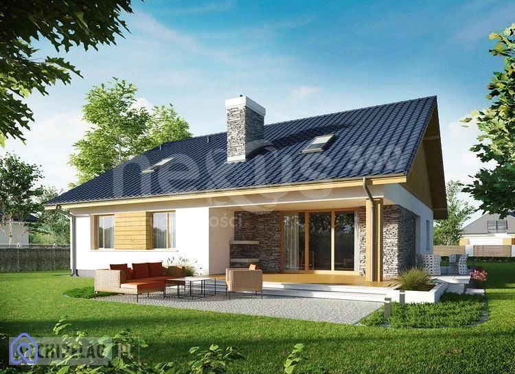 Działka posiada zatwierdzony projekt budowlany (link do strony: projekt domu AG095 Klementynka II G1 - Murator projekty (muratordom.pl))