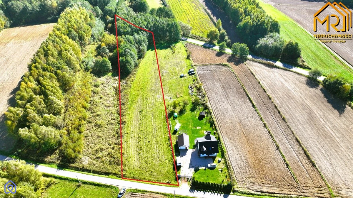 Na sprzedaż działka budowlano-rolna w miejscowości Łęki Górne, gmina Pilzno, powiat dębicki, województwo podkarpackie, w pobliżu granicy z Małopolską.