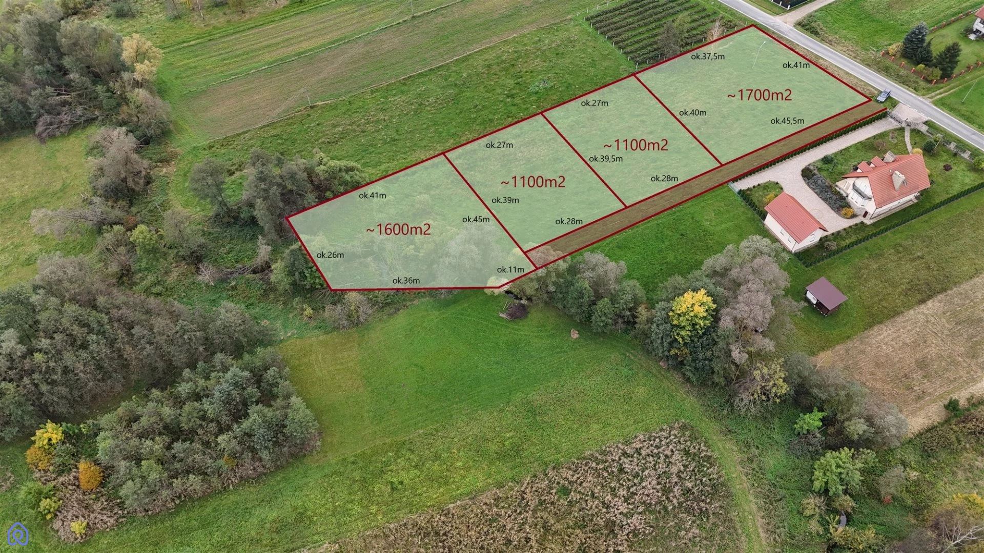 Wjazd na posesję odbywa się przez 6-metrową drogę wewnętrzną, której udział jest już wliczony w cenę działki.
