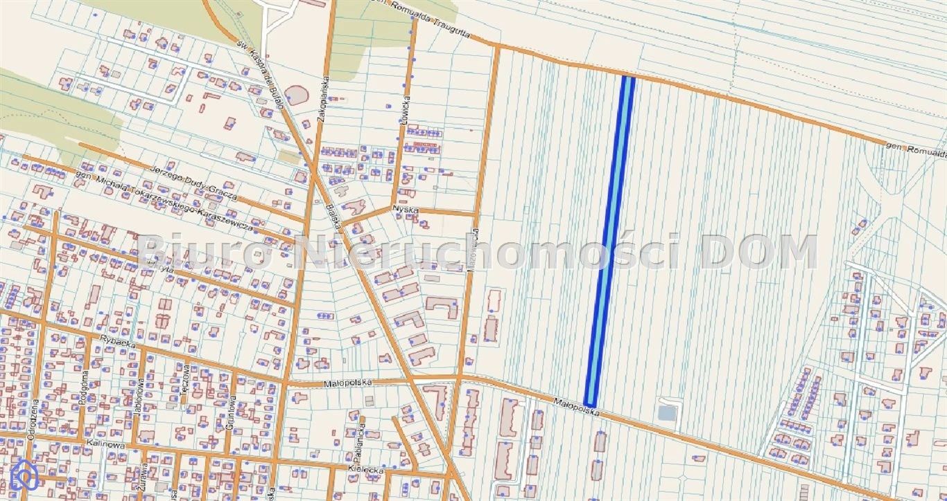 Do sprzedaży działka inwestycyjna o powierzchni użytkowej 11894 (szerokość 17m), zlokalizowany w Częstochowie przy ul Małopolskiej (dochodzi do Traugutta) w sąsiedztwie zabudowy mieszkaniowej wielorodzinnej.DLA DZIAŁKI brak MIEJSCOWEGO PLANU ZAGOSPODAROWANIA PRZESTRZENNEGO