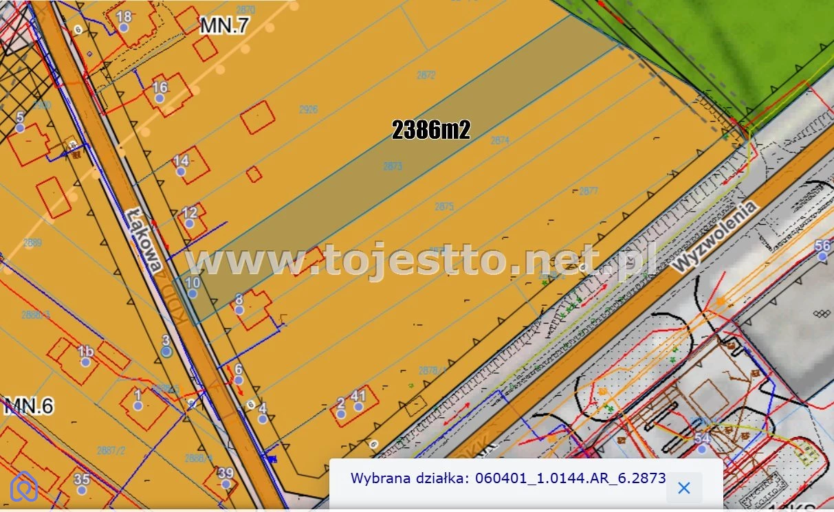 działkę budowlaną o powierzchni 2386 m2 w Hrubieszowie, przy ulicy Łąkowej (boczna ulicy Wyzwolenia).