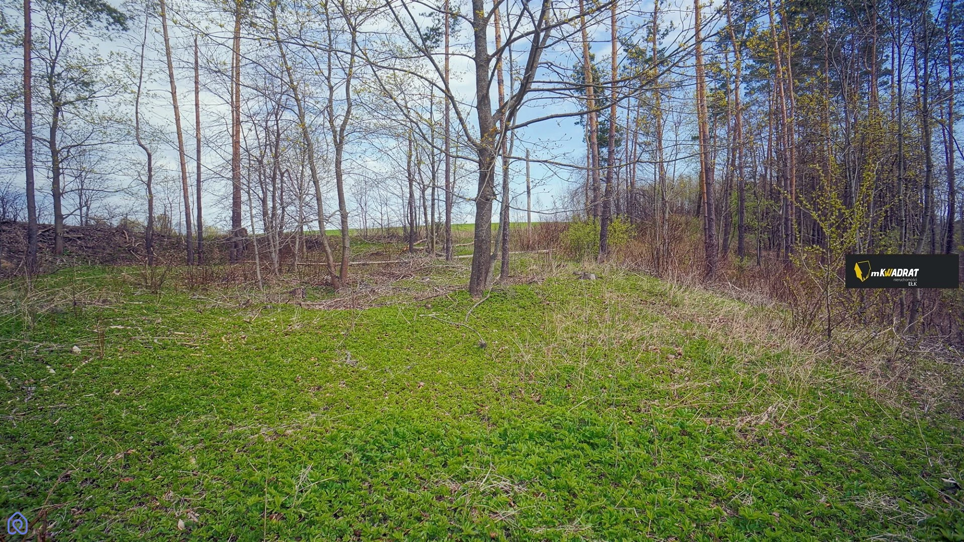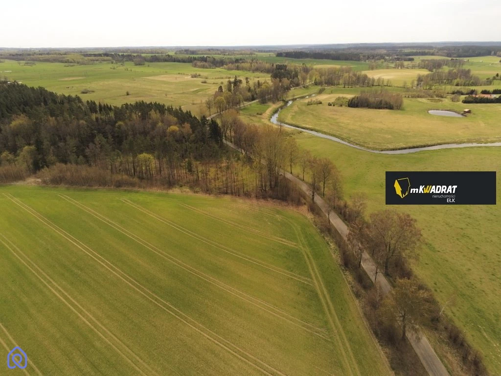 Nieruchomość o nieregularnym kształcie (front działki od strony drogi asfaltowej: 92metry), w znacznej części pochyła, częściowo zalesiona, granicząca z niewielkim ciekiem wodnym, dopływem rzeki Gołdapy.