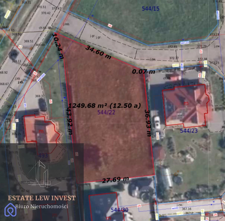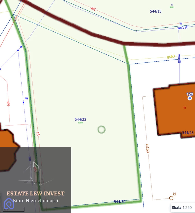 Powierzchnia: 1256 m² Wymiary: ok. 50m x 28m Media: Gaz, Woda, Prąd, Kanalizacja - na działce! Numer działki: 544/22 Przeznaczenie: MN - zabudowa jednorodzinna