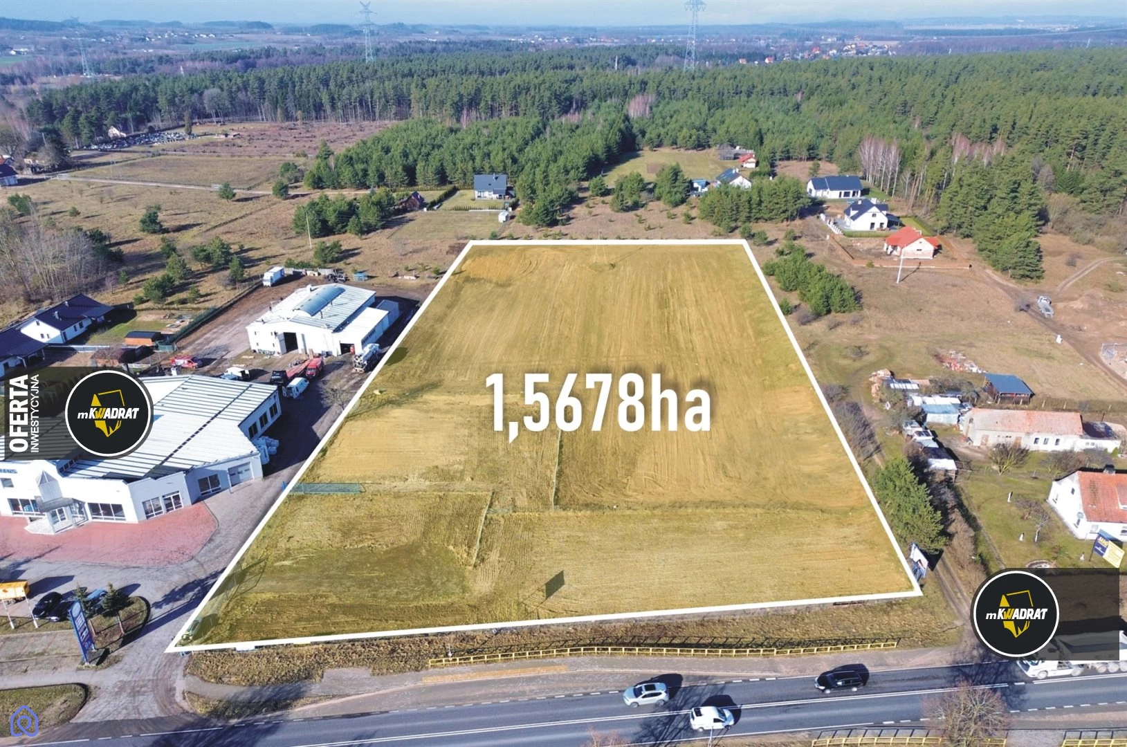 Z uwagi na wielkość (90m frontu działki) i położenie działka idealna pod różnego rodzaju inwestycje: sklep ogrodniczy, myjnię bezdotykową, przemysł, hotelarstwo czy gastronomię.