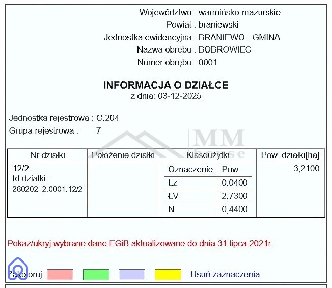 Powierzchnia: 3,21 ha Lokalizacja: obręb Bobrowiec, poza granicami miasta Braniewa Dojazd: droga gruntowa (łatwy dostęp dla pojazdów rolniczych) Aktualne użytkowanie: grunty rolne – prowadzone uprawy Kształt: prostokątny, pozwalający na swobodne planowanie przestrzenne Otoczenie: tereny rolnicze, luźna zabudowa, spokojna okolica Możliwości zagospodarowania