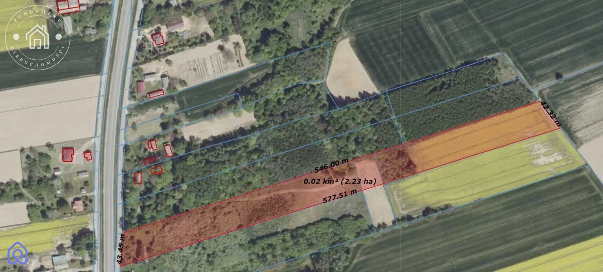 Na sprzedaż pięknie położona działka rolno-budowlana w pobliżu Krzczonowskiego Parku Krajobrazowego o powierzchni około 2,23ha Działka zlokalizowana w miejscowości Gierniak, gm. Krzczonów, w odległości ok. 24 km od granic Miasta Lublin. Powierzchnia zabudowy zagrodowej wynosi około 42 arów, pozostała część działki to grunty rolne. Działka położona jest przy nowej drodze asfaltowej z łagodnym zjazdem. Parametry działki: - powierzchnia ok. 2.23 ha - wymiary: ok. 43,00 x 555,000 m - ukształtowanie: teren płaski Media zlokalizowane przy drodze -Sieć energetyczna -Sieć wodociągowa LOKALIZACJA Działka znajduje się bezpośrednio przy wyremontowanej drodze wojewódzkiej nr 835. Dojazd do Lublina zajmuje około 20 minut natomiast do Krzczonowa dojazd zajmuje około 4 minut. Zapraszam do kontaktu telefonicznego oraz na prezentacje nieruchomości. Niniejsze ogłoszenie ma charakter informacyjny i nie stanowi oferty w rozumieniu art. 66 i następnych Kodeksu cywilnego. Informacje zawarte w ogłoszeniu zostały sporządzone na podstawie danych uzyskanych od właściciela oraz oględzin nieruchomości i mogą podlegać aktualizacji.