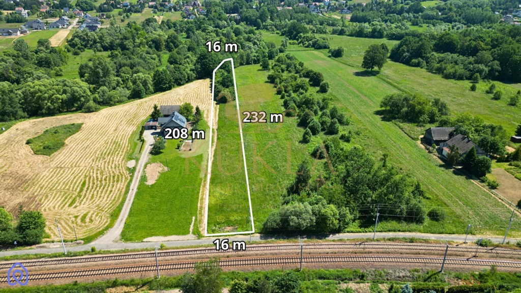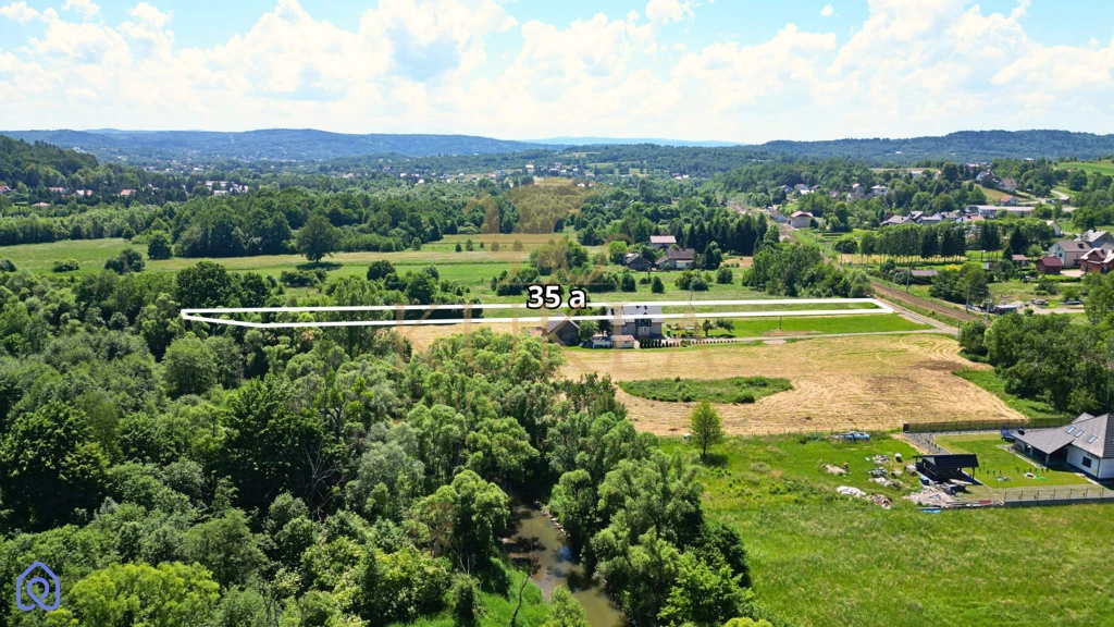 Działka o powierzchni 34,85 arów (3485 m²) usytuowana jest przy rzadko uczęszczanej drodze, ma regularny kształt i jest prostopadła do torów kolejowych, co może stanowić interesujący element krajobrazu. Sąsiedztwo rzeki dodaje uroku temu miejscu, a możliwość bliskiego kontaktu z naturą zwiększa jego atrakcyjność. Na terenie działki znajduje się 10 arów lasu, co stanowi doskonałe miejsce na spacery i relaks wśród zieleni. Jest to idealna propozycja dla osób ceniących sobie bliskość przyrody oraz możliwość posiadania własnego kawałka lasu. Pod względem uzbrojenia, działka jest dobrze wyposażona: przy drodze znajduje się wodociąg oraz infrastruktura telekomunikacyjna, bezpośrednio na działce dostępne są przyłącza gazu oraz prądu.