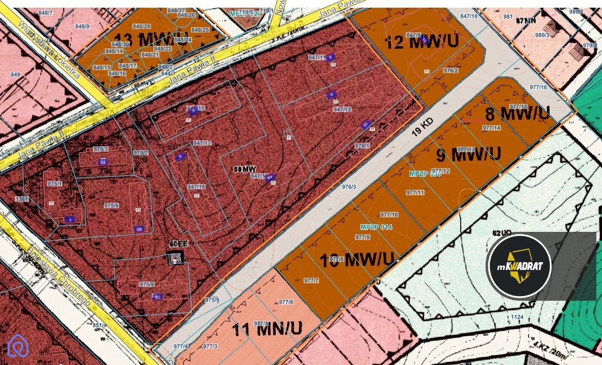 1) Przeznaczenie podstawowe: Teren projektowanej zabudowy mieszkaniowej, wielorodzinnej.