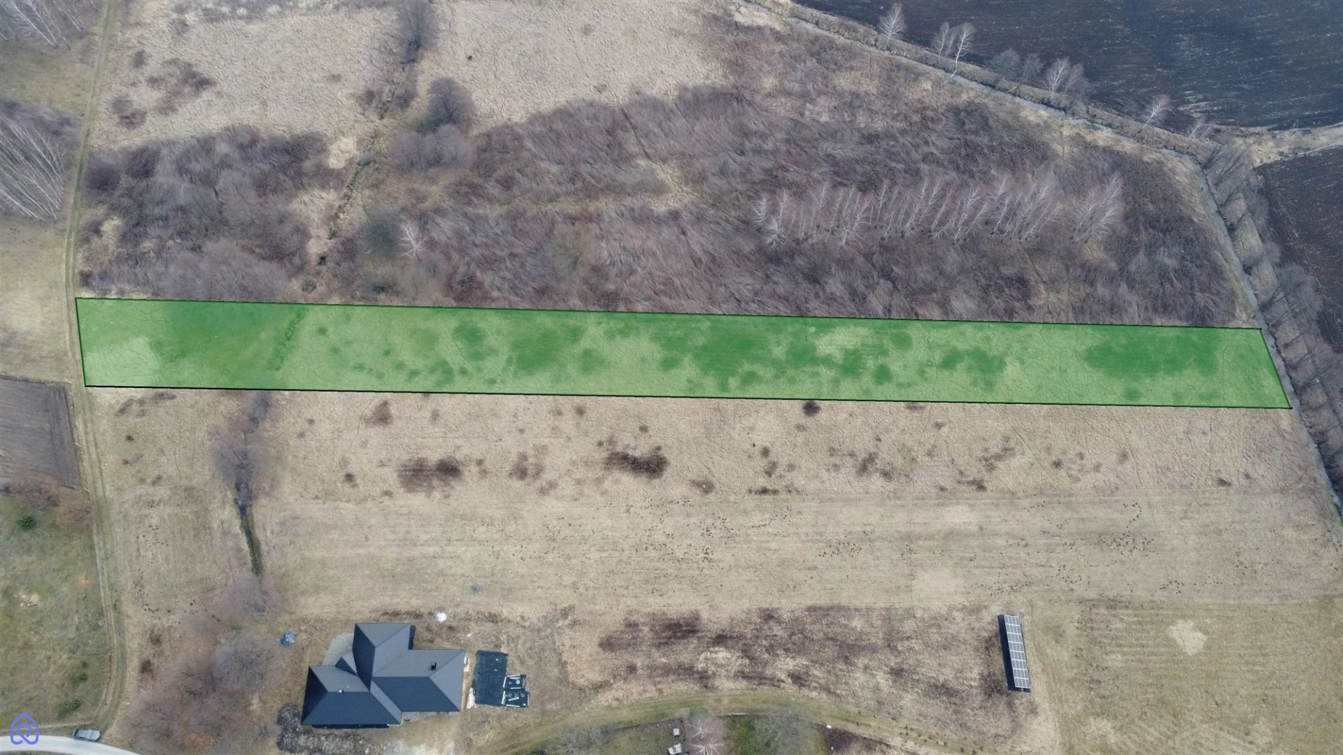 Nieruchomość ma wymiary ~17 x 257m - prostokąt. Teren jest całkowicie płaski co umożliwia łatwe zagospodarowanie przestrzeni.