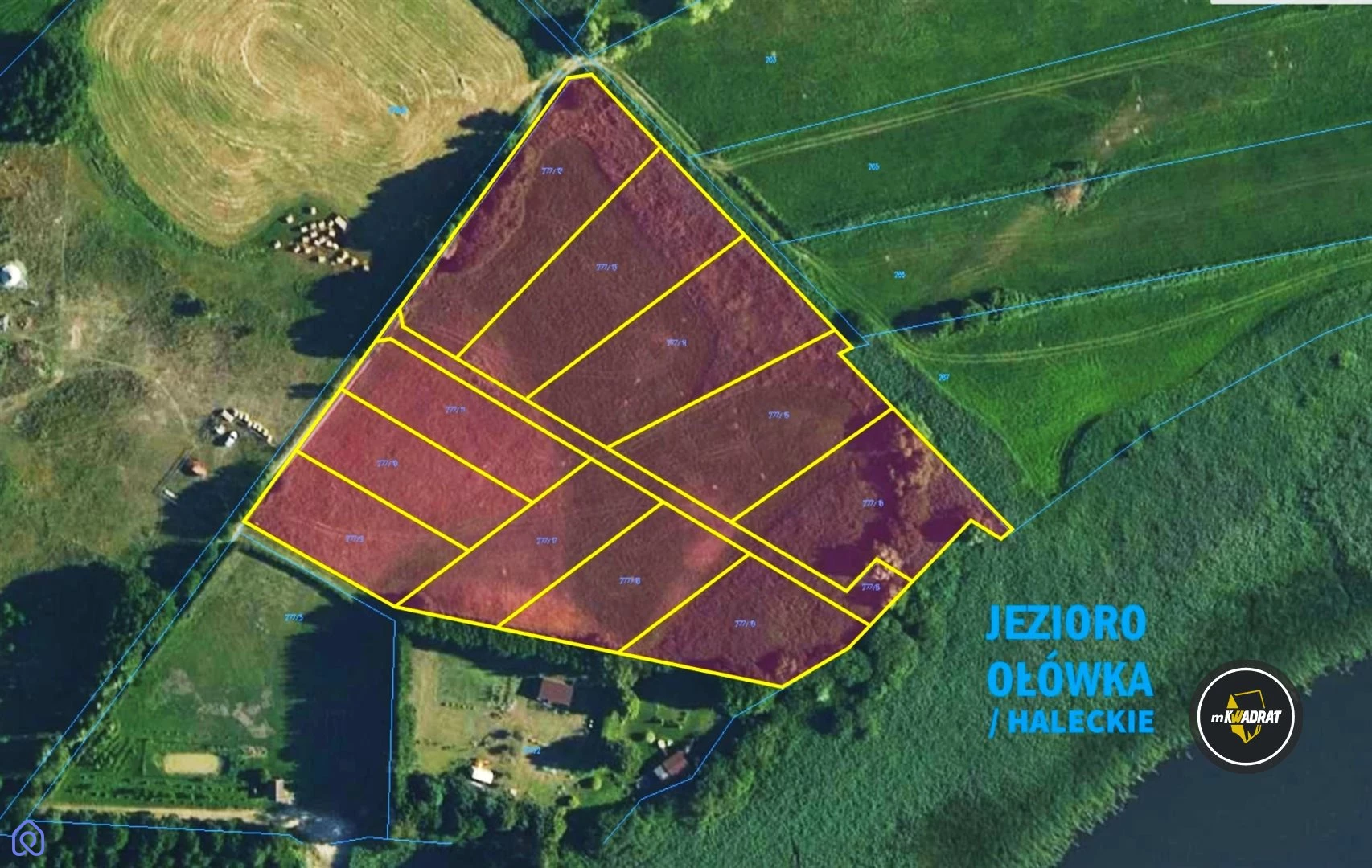 Na sprzedaż kompleks działek o łącznej powierzchni 1,5ha zlokalizowany przy Jeziorze Haleckim\Ołówka przy miejscowości Straduny, gm. Ełk. Komleks 12 działek - w tym jedna wspólna - posiada własną linię brzegową (do uporządkowania).