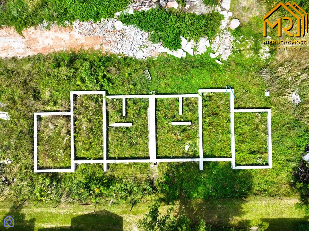 Teren w całości ogrodzony siatką. Projekt zagospodarowania terenu i dokumentacja zawiera łącznie 6 budynków (12 mieszkań), jednak właściciele jeden pozostawiają na własne cele mieszkaniowe, stąd powierzchnia działki może ulec zmianie.