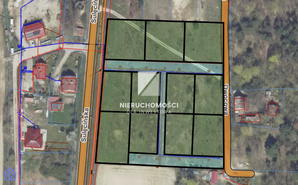 Działki budowlane uzbrojone: energia, woda, kanalizacja | 800–1200 m² | wjazd od ul. Sulęcińskiej, dostęp od ul. Owocowej