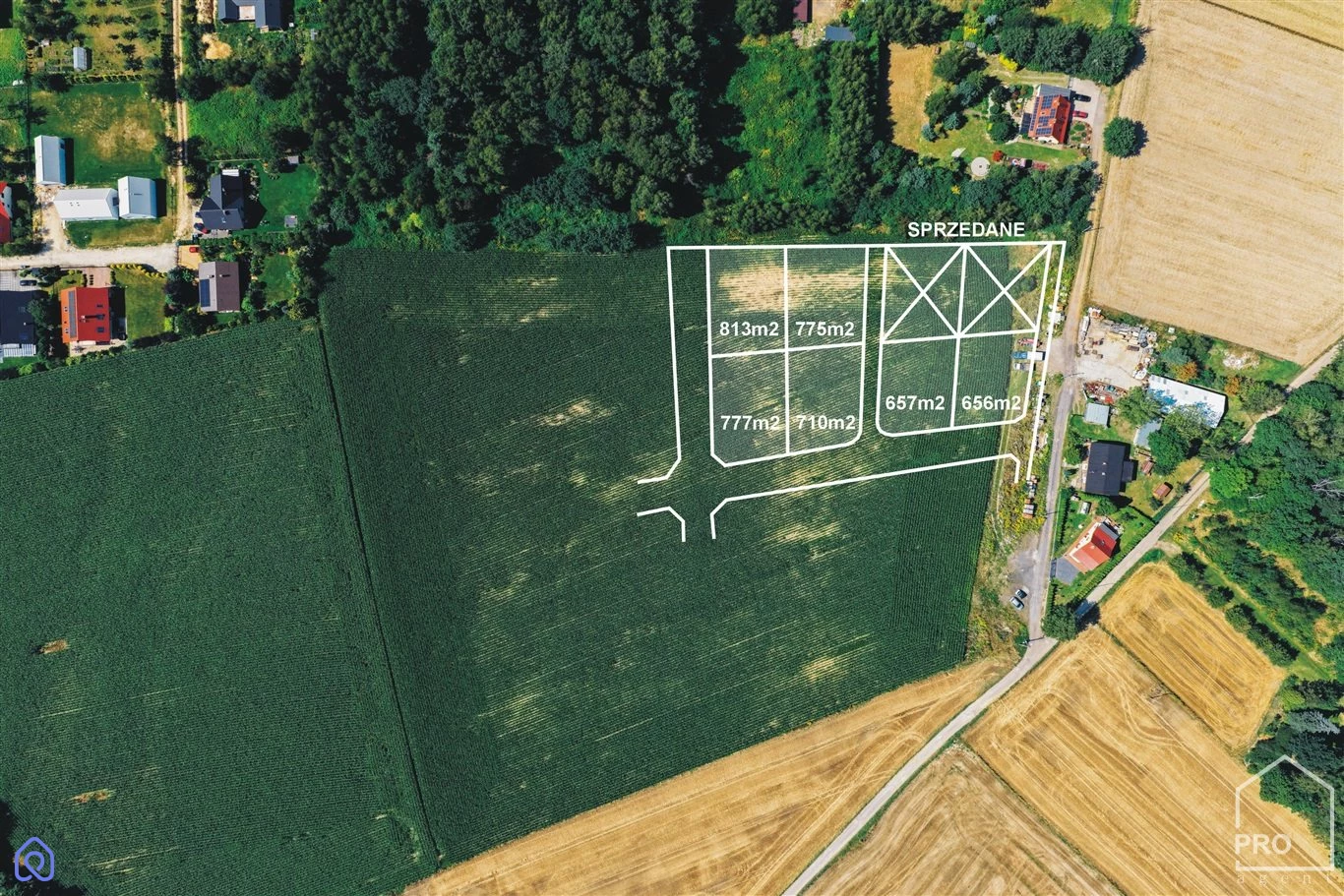 Działki oznaczone są w galerii zdjęć powierzchniami.