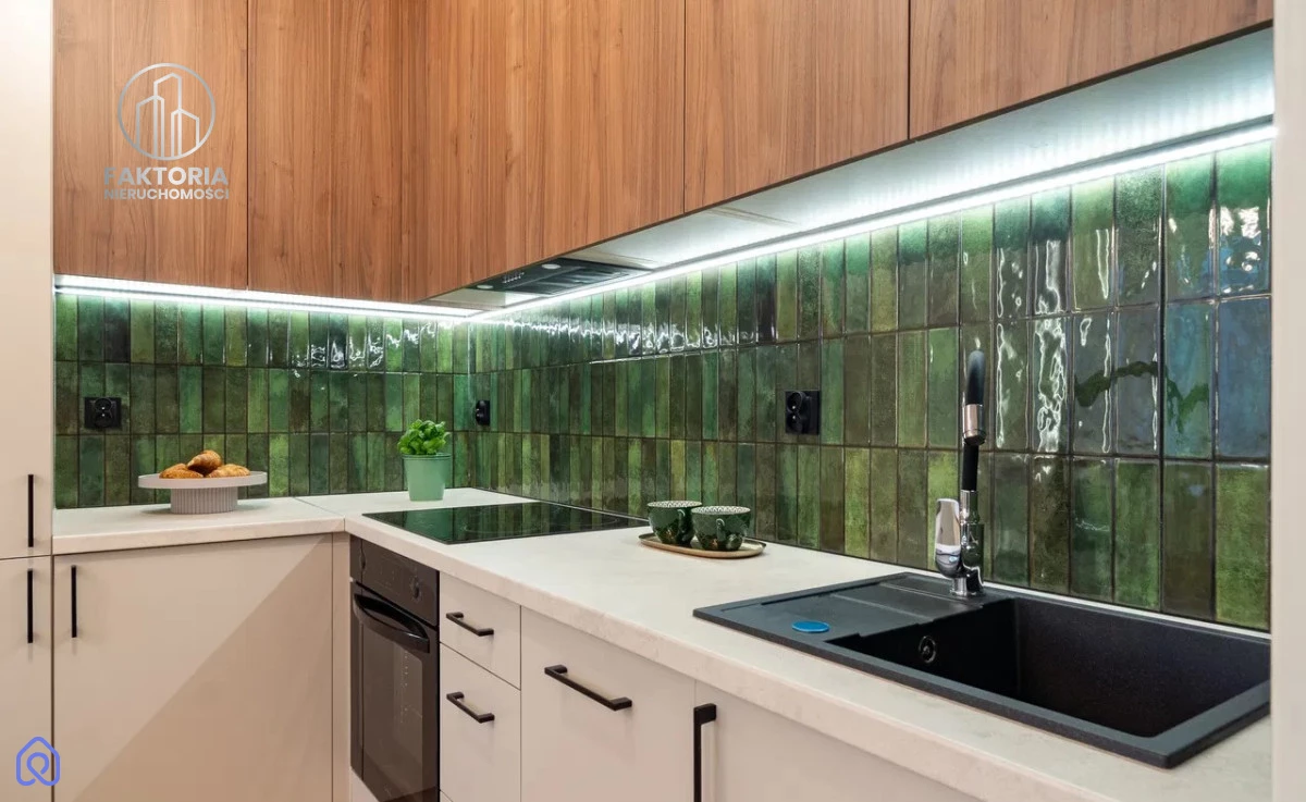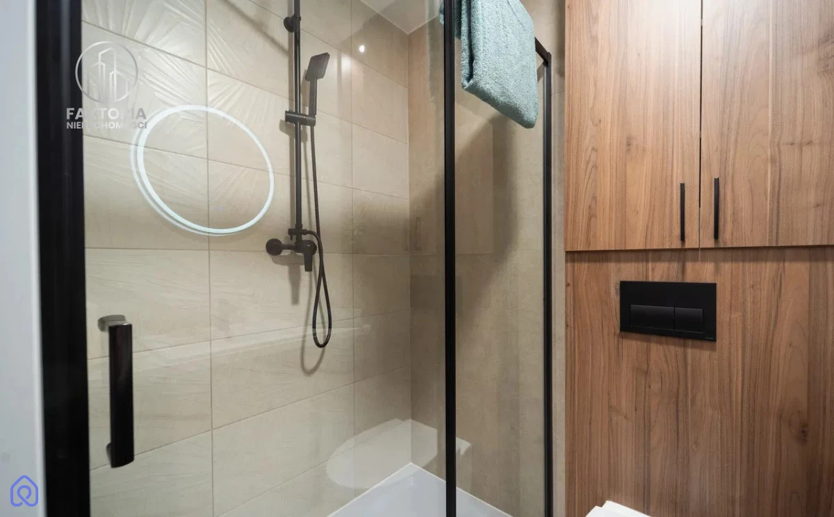 W cenę wliczone jest kompletne umeblowanie oraz wysokiej klasy wyposażenie stałe. Każdy detal został dopracowany przez stolarza - od pojemnej kuchni, przez garderobę, aż po szafy wnękowe. Klimat wnętrza buduje nastrojowe, wielopunktowe oświetlenie LED, a wysokiej jakości materiały wykończeniowe gwarantują trwałość na lata.