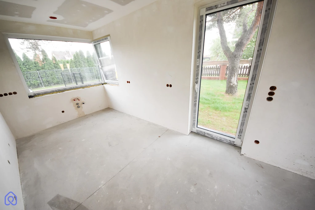 Trzy ustawne sypialnie, pomieszczenie techniczne z miejscem na pompę ciepła, komfortowa łazienka z miejscem na wannę i prysznic.