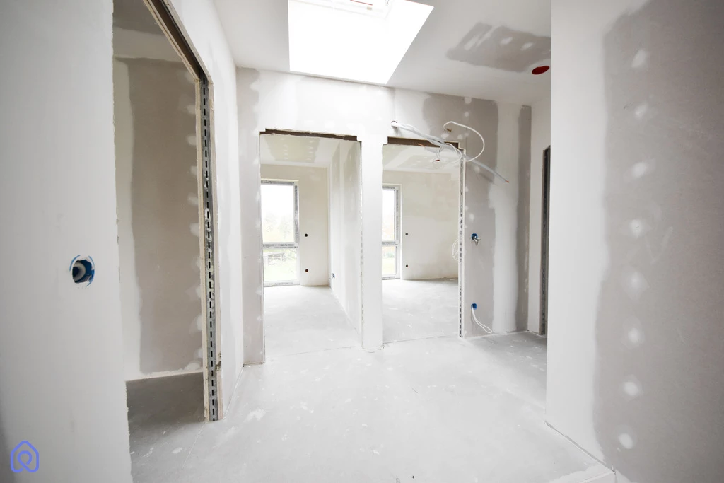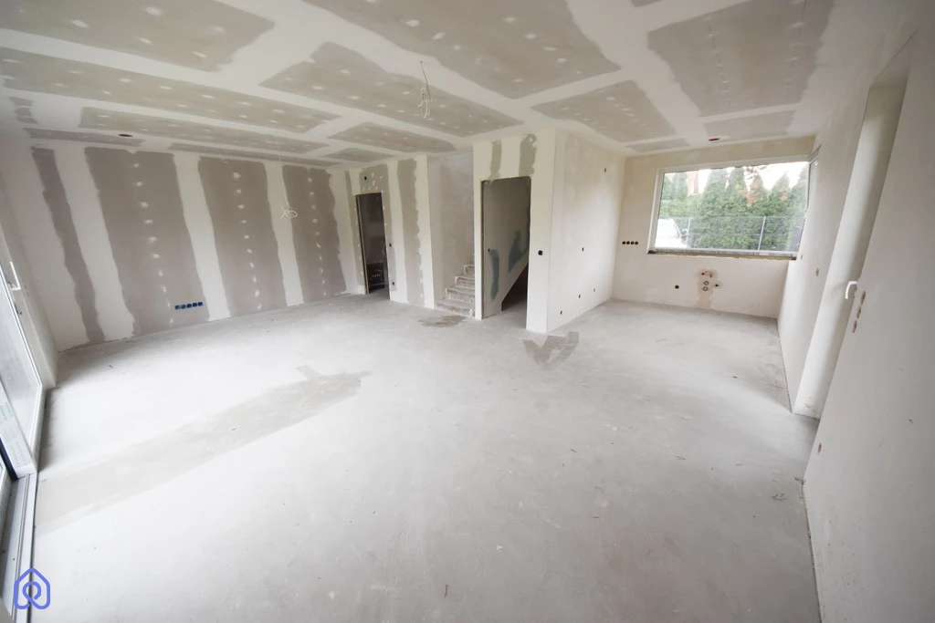 elewacja: styropian + tynk silnikowy 1,5mm o pełnej strukturze,dach płaski pokryty papą, ogrzewanie podłogowe zasilane powietrzną pompą ciepła, wentylacja mechaniczna z rekupuracją ,zabudowana klimatyzacja,zabudowane stelaże wc oraz posadzki cementowe.