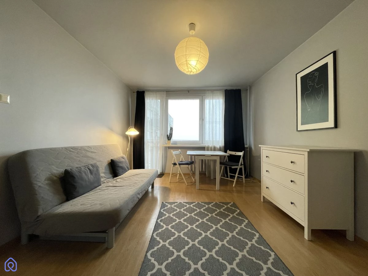 Układ mieszkania jest bardzo funkcjonalny, a wysoka kondygnacja zapewnia doskonałe doświetlenie i wyjątkowy widok na panoramę miasta.