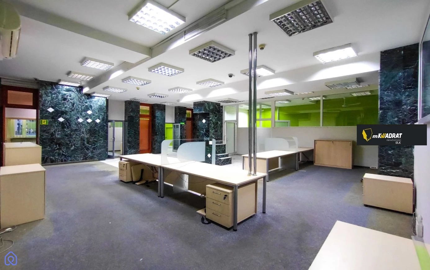 Lokal posiada imponujący hall wyjściowy, prowadzący do ogromnej sali sprzedaży. Zarówno budynek jak i lokal to wyjątkowe nieruchomości, które pod względem estetyki jak i funkcjonalności wyróżniają się na tle dostępnej powierzchni biurowej do wynajęcia w Ełku. Obecna aranżacja lokalu oferuje m.in. przestronną salę sprzedaży, 3 gabinety menadżerskie, gabinet dyrektora, pomieszczenie techniczne – serwerownia, pomieszczenie przygotowania kontraktów, kameralną salę klienta, pomieszczenia socjalne, zaplecze, pomieszczenie skarbca oraz piwnicę z garażem oraz pomieszczenia ochrony. Biura można łatwo skonfigurować w układzie podzielonym, na wzór obecnej aranżacji, lub otwartym - usuwając ścianki działowe, zgodnie z potrzebami najemców. Doskonałą łączność zapewnia pełna infrastruktura okablowania telefonicznego, komputerowego i elektrycznego (możliwa do uzyskania w lokalu instalacja światłowodowa).