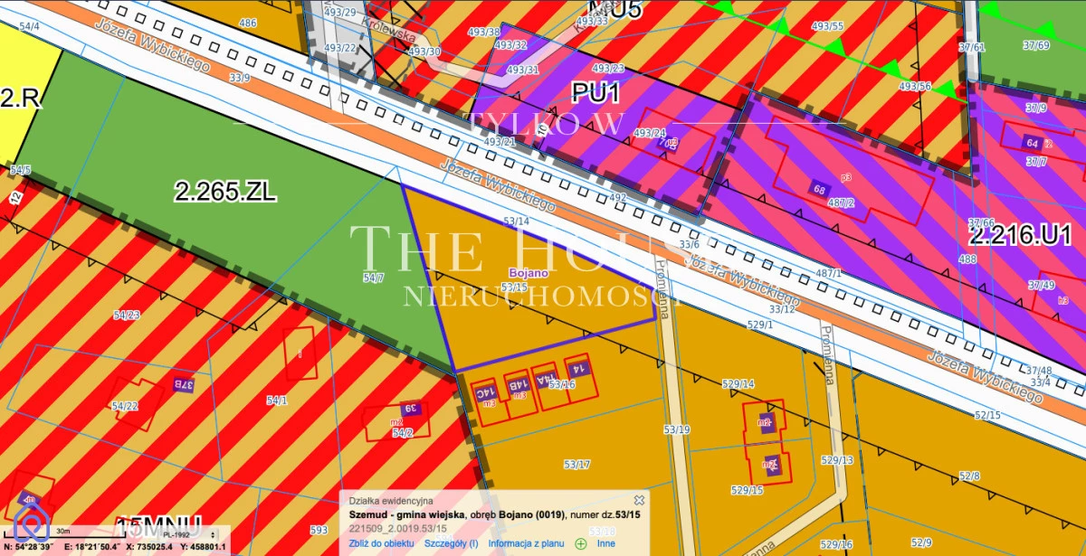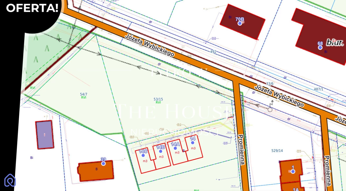 ♦ działka o powierzchni 1555 m2 (nr 53/15), objęta miejscowym planem zagospodarowania przestrzennego - z przeznaczeniem zabudowy jednorodzinnej/bliźniaczej oraz zabudowy produkcyjno-usługowej bez ustalania proporcji pomiędzy funkcjami,