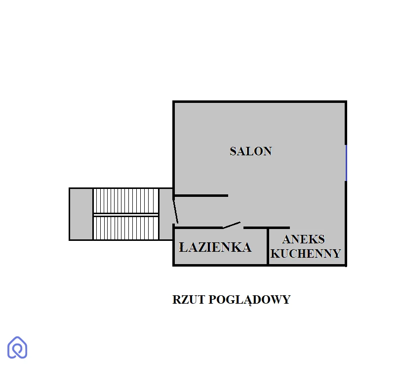 Jest to rodzaj kawalerki, która posiada trzy pomieszczenia: łazienkę, przedpokój, oraz pomieszczenie spełniające funkcję salonu z aneksem kuchennym, z czego wydzielono miejsce do odpoczynku.