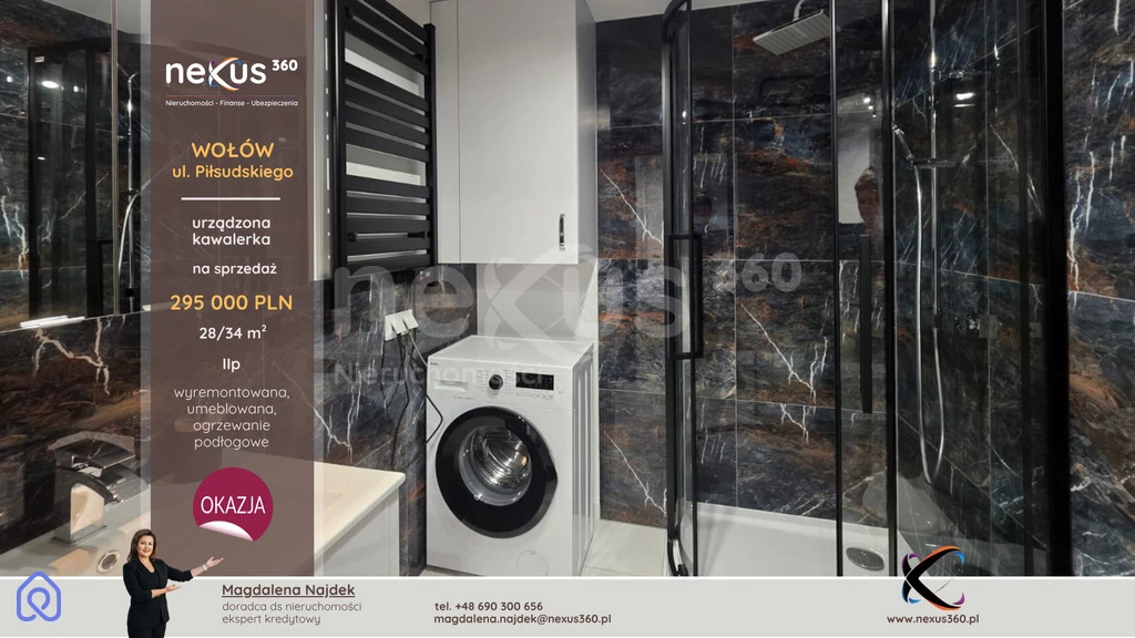 Kawalerka po generalnym remoncie, 28 m2 (34 m2 po podłodze), Wołów – ul. Piłsudskiego, cegła, niska zabudowa