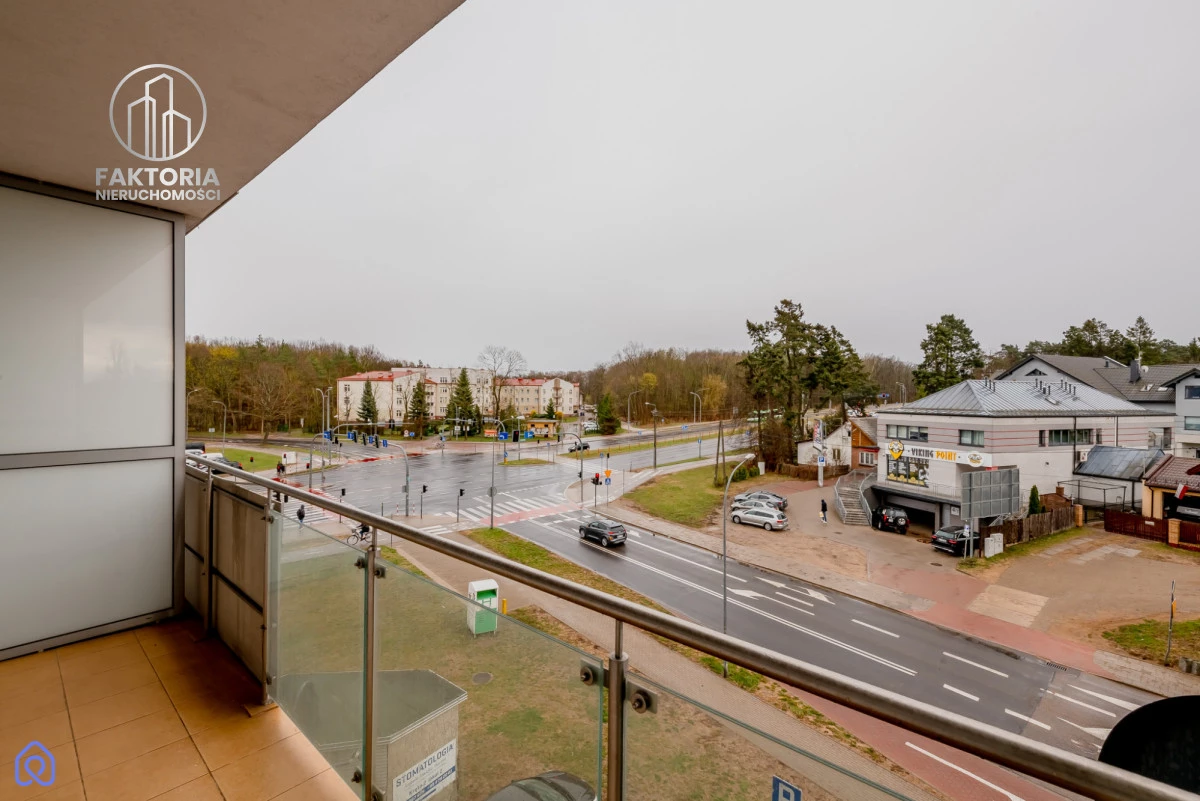 Do mieszkania przynależy duży balkon, z którego rozpościera się widok na las.