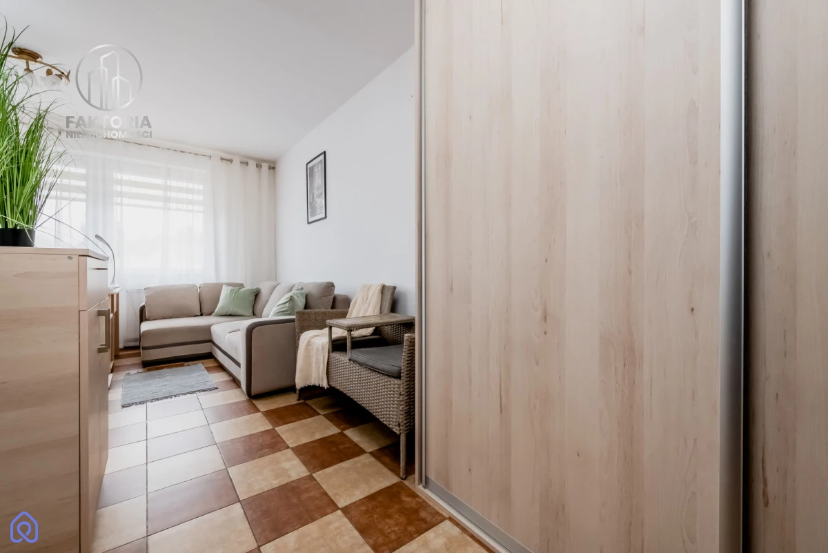Mieszkanie, sprzedawane wraz w widocznym na zdjęciu wyposażeniem - stała zabudowa w korytarzu oraz meble (biurko, szafki, komoda) wykona na zamówienie przez stolarza. W oknach zamontowane nowe rolety oraz moskitiera.