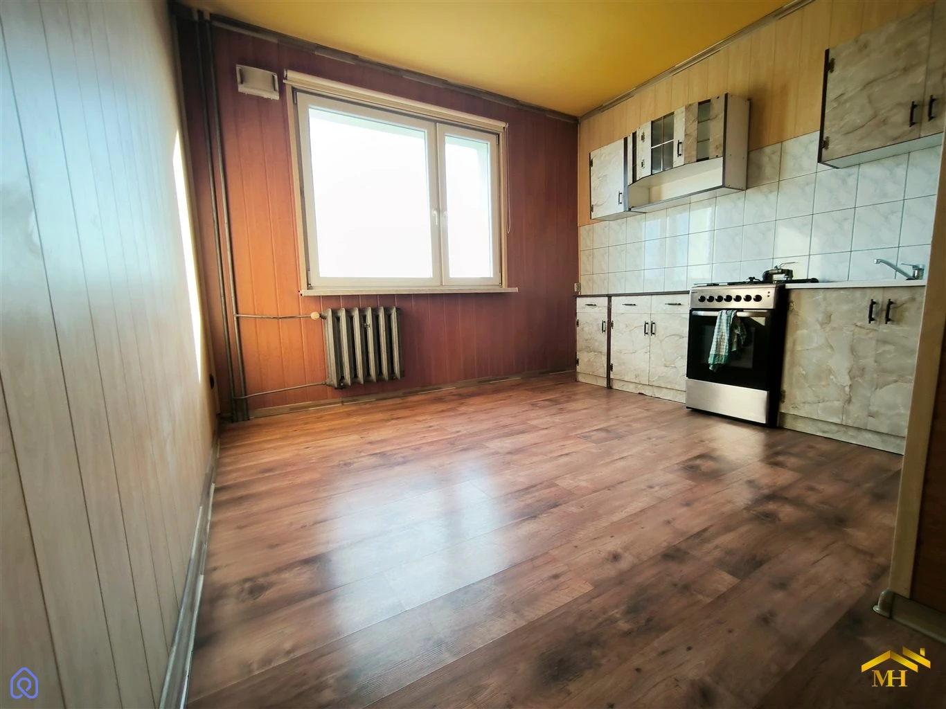 Okna PCV, płytki, płytki oraz panele na podłogach..