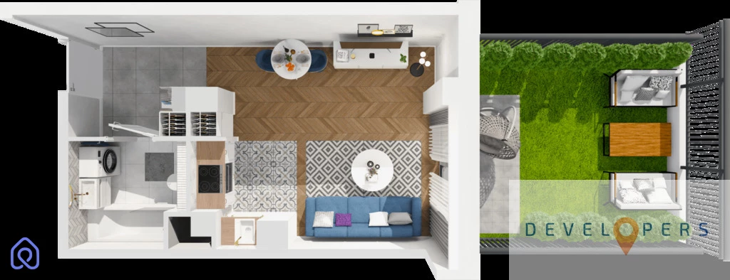 ⦁ lokale na parterze posiadają ogródek z tarasem a na piętrach przestronne balkony