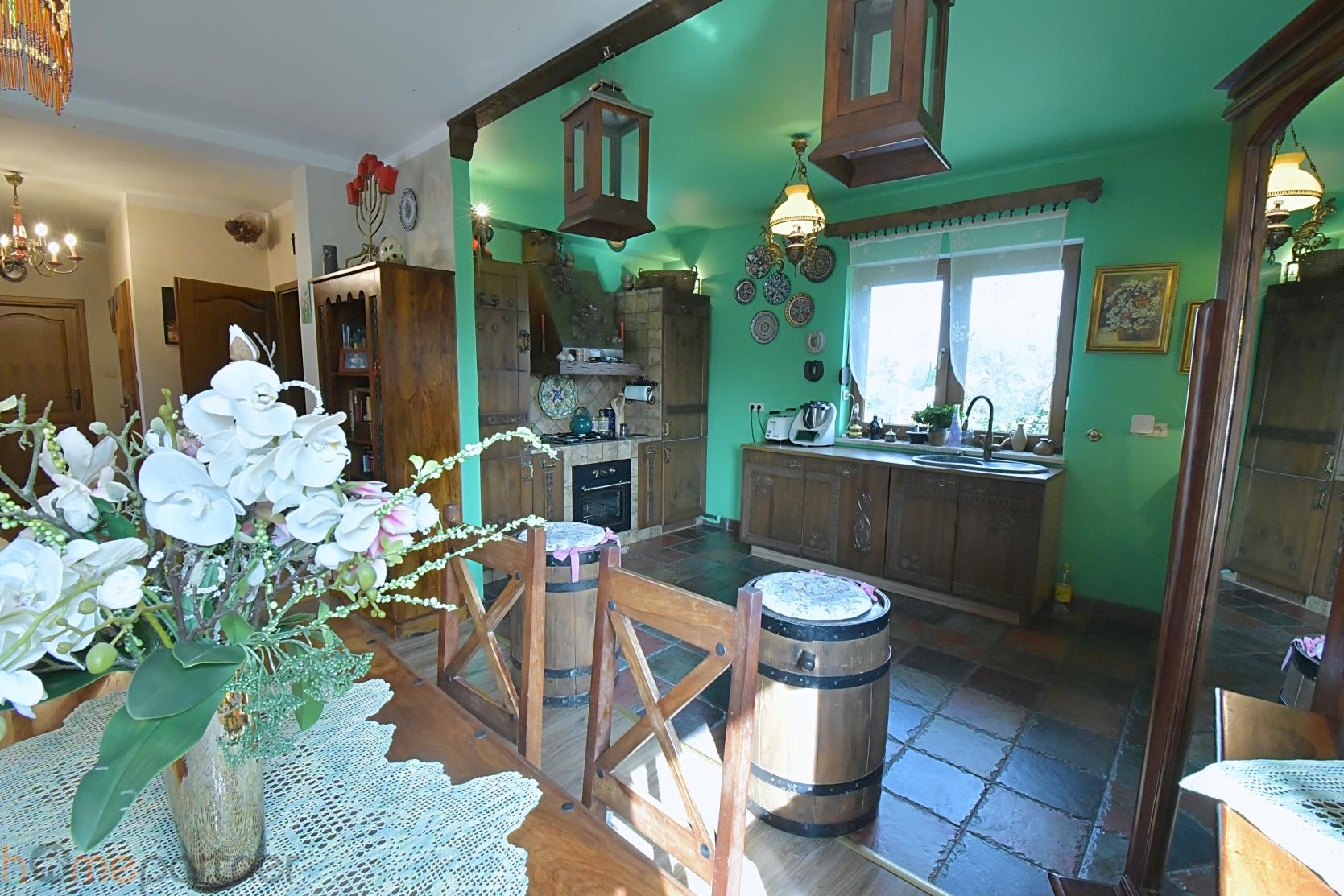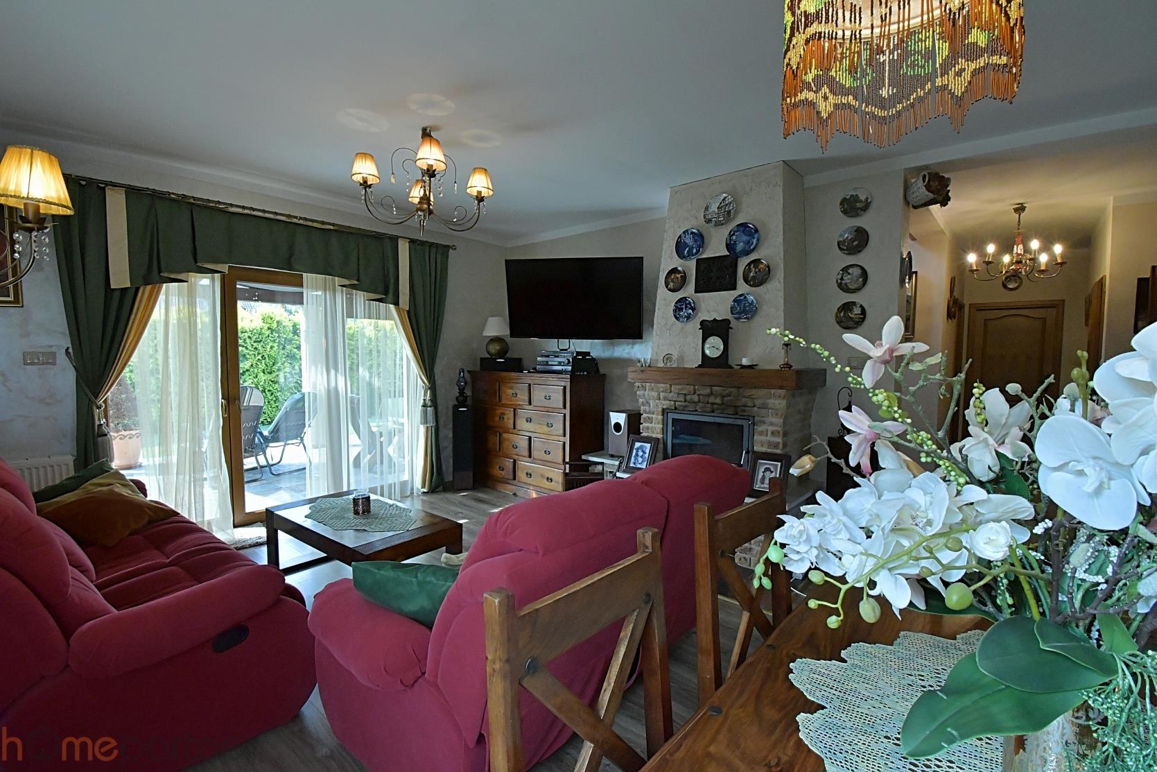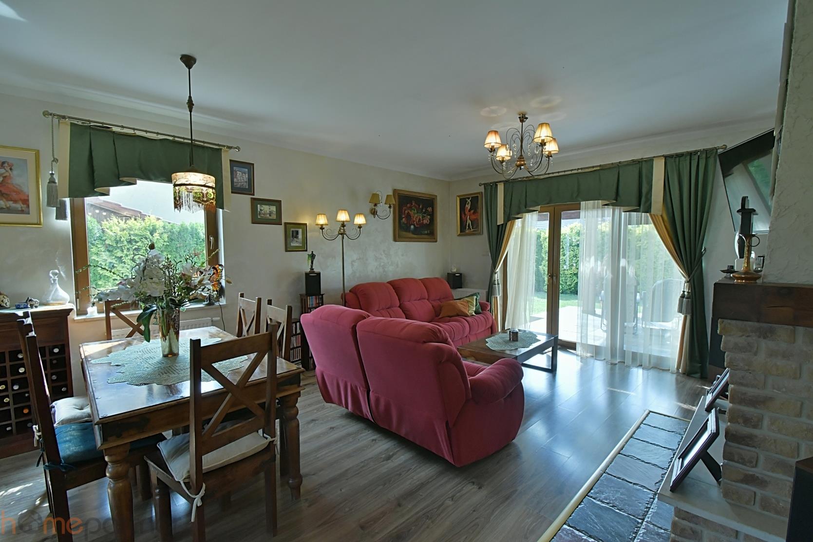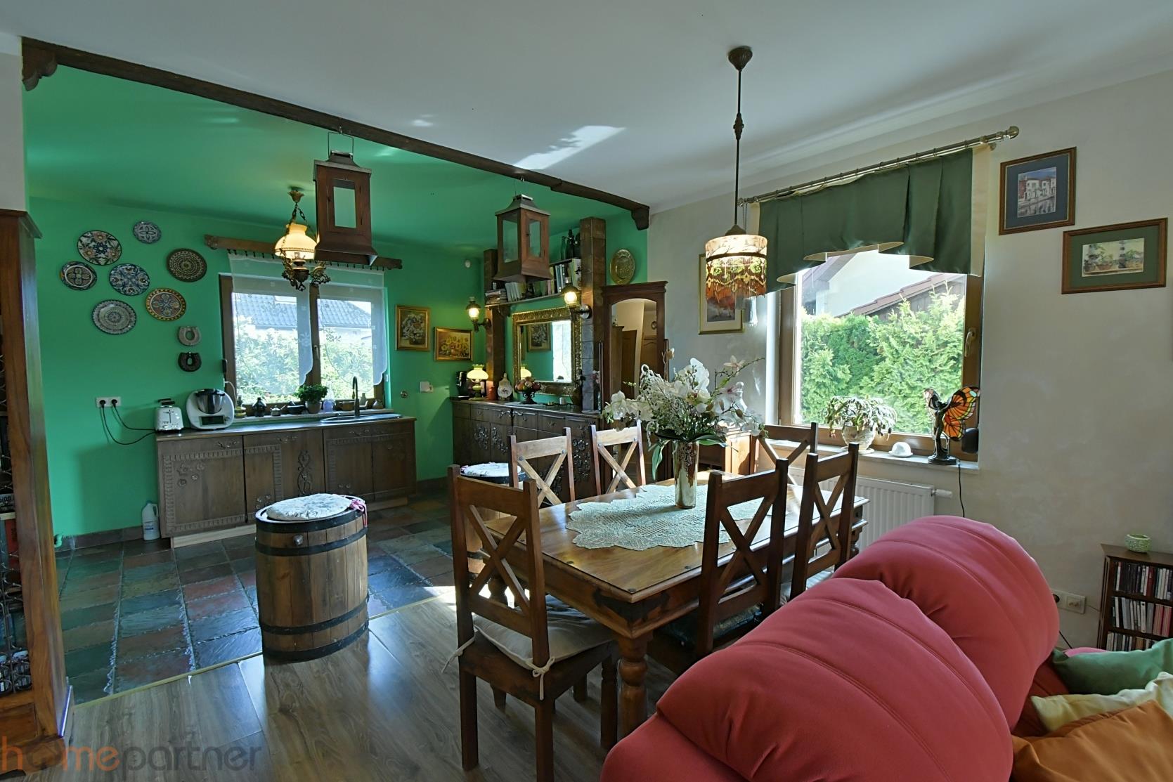 Budynek mieszkalny wybudowany w 2011 r. Dom został wykończony w wysokim standardzie, bardzo gustownie i funkcjonalnie. Dom posiada nowoczesne rozwiązania, aczkolwiek sam wystrój jest niezmiernie klimatyczny. Ustawny salon z zachodnią ekspozycją i kominkiem. Kuchnia w pełni wyposażona, w sprzęt najwyższej klasy-lodówka, piekarnik, płyta gazowa, zmywarka 60 cm, okap. Meble dębowe, niezwykłej urody wykonywane przez stolarza, na wymiar, wg indywidualnego, bardzo oryginalnego projektu. Piękne okucia zadziwiają swą oryginalną, wysublimowaną formą. W kuchni - ogrzewanie podłogowe. Zmywarka i piekarnik po wymianie w 2023 roku. Dwie łazienki - jedna z wanną wolnostojącą, z możliwością podłączenia bidetu, a druga na górze z podłączeniem pod prysznic. W obu ogrzewanie podłogowe. Górna łazienka jest jeszcze do wykończenia tzn. do pomalowania i montażu armatury. Obłożona jest stylowymi, ręcznie wykonanymi płytkami. Na podłogach panele wysokiej klasy. Schody drewniane. Ogrzewanie podłogowe w kuchni oraz w łazienkach. Przestronność i swoboda ruchu. Garaż w bryle budynku.
