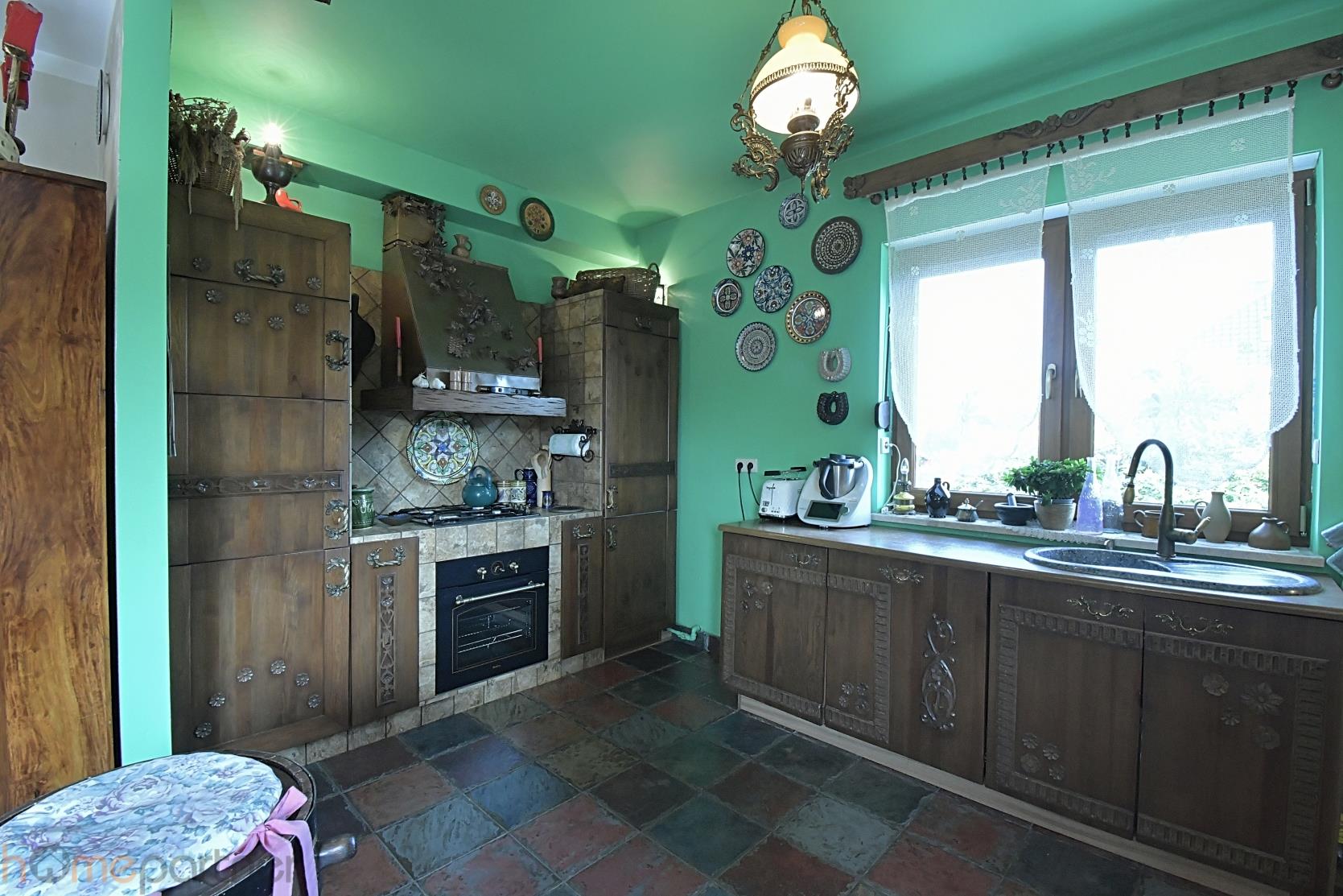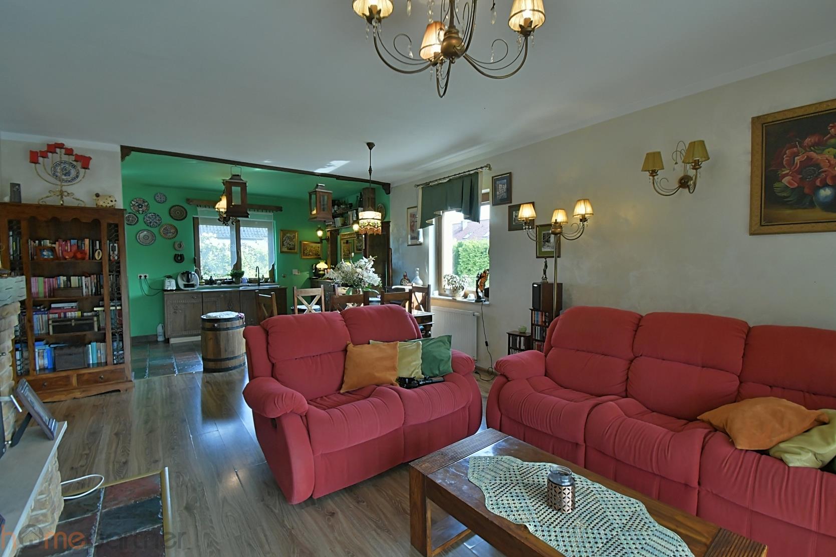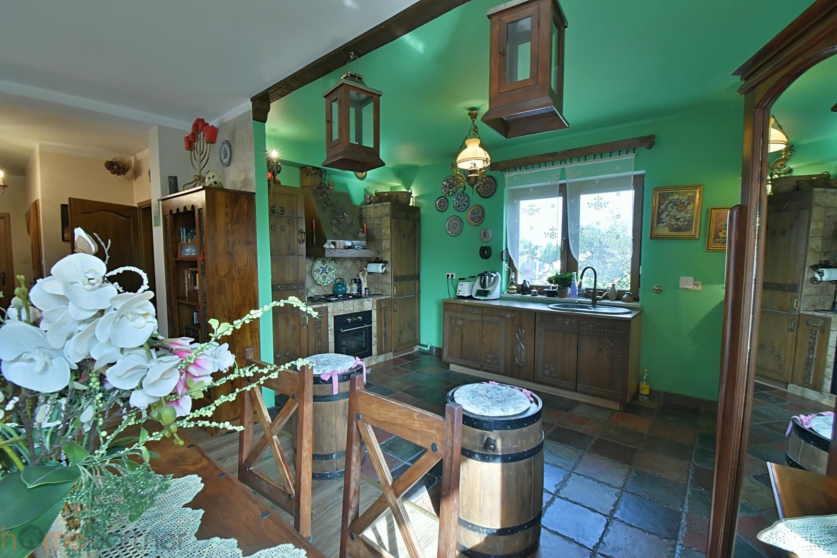COMFORT AND FUNCTIONALITY Residential building built in 2011. The house was finished to a high standard, very tasteful and functional. The house has modern solutions, yet the decor itself is immeasurably atmospheric. A set living room with a western exposure and a fireplace. The kitchen is fully equipped, with top-of-the-line equipment - fridge, oven, gas hob, dishwasher 60 cm, hood. Oak furniture of extraordinary beauty made by a carpenter, made to measure, according to an individual, very original design. Beautiful fittings amaze with their original, sublime form. Two bathrooms - one with a free-standing bathtub, with the possibility of connecting a bidet, and the other upstairs with a shower connection. The upper bathroom is yet to be finished, i.e. to be painted and fixtures installed. It is clad with stylish handmade tiles. On the floors are high-grade panels. Wooden staircase. Underfloor heating in the kitchen and bathrooms. Spaciousness and freedom of movement. Garage in the body of the building.