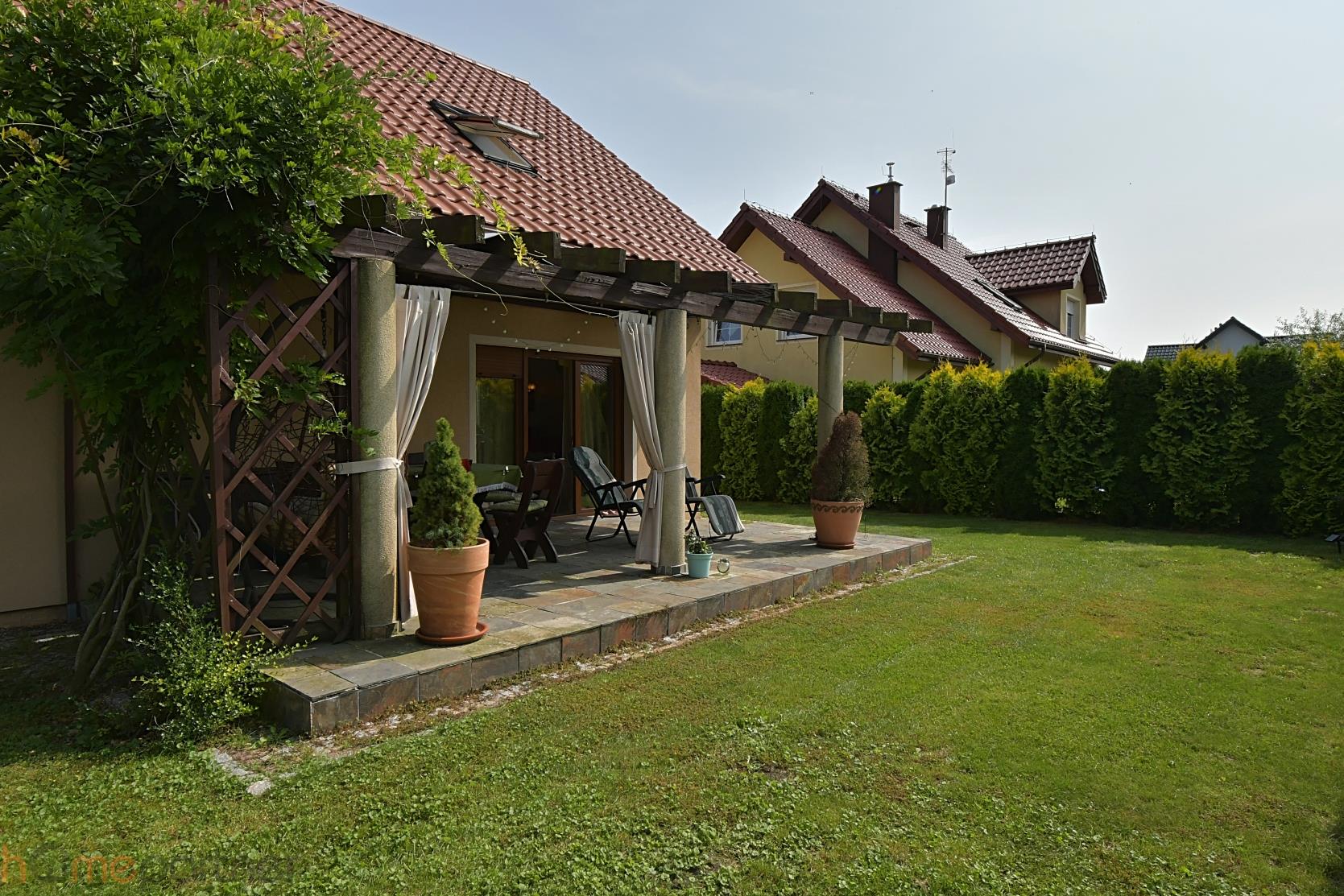 GARDEN Plot of land with a size of 625 m2. The whole area fenced and very nicely landscaped. Garden with numerous plantings, as well as a place set aside for a relaxation area. There is also a well on the property. Beautiful covered terrace with western exposure. The house has a garden counter.