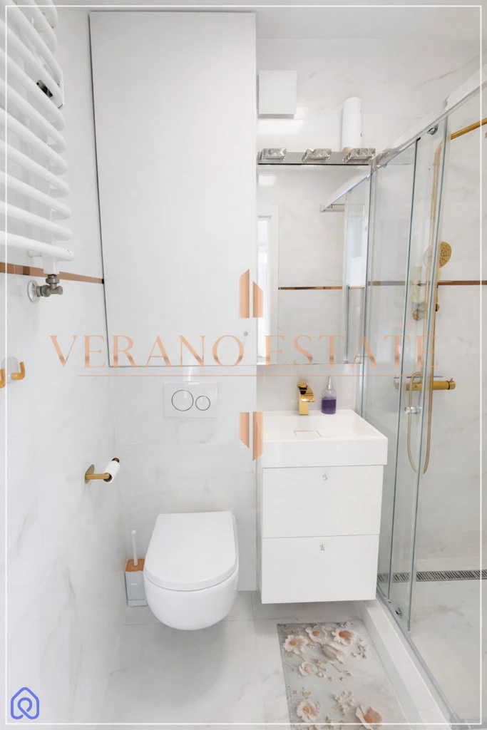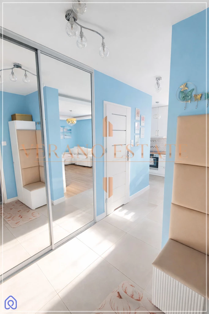 Mieszkanie sprzedawane jest z pełnym umeblowaniem i wyposażeniem, dzięki czemu można wprowadzić się bez dodatkowych kosztów.