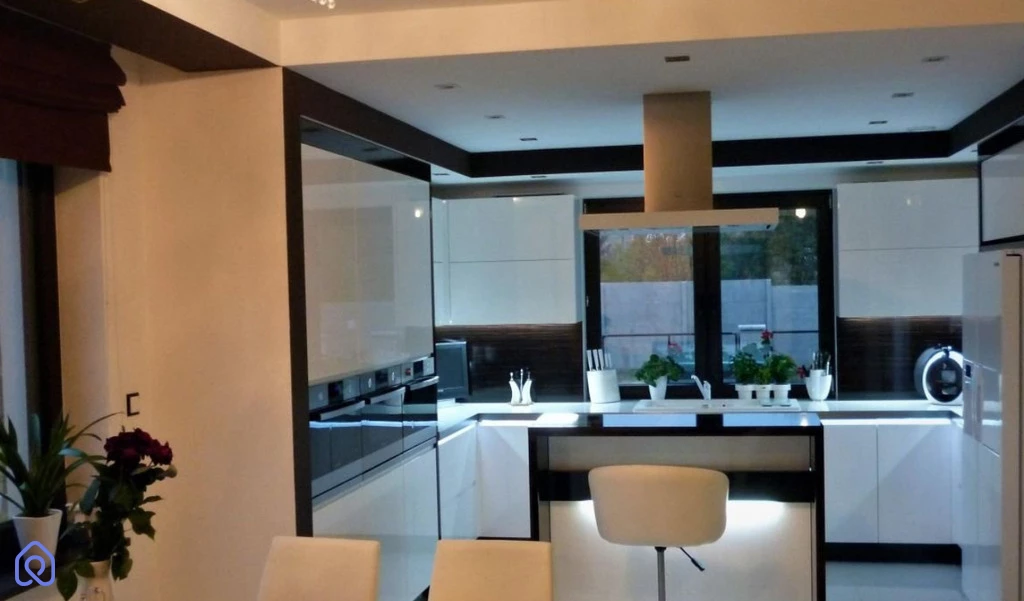 - otwarta przestrzeń z częścią wypoczynkową, jadalną, kuchnią i holem o łącznej powierzchni ponad 73 m.kw (z tarasem ponad 100 m.kw.),