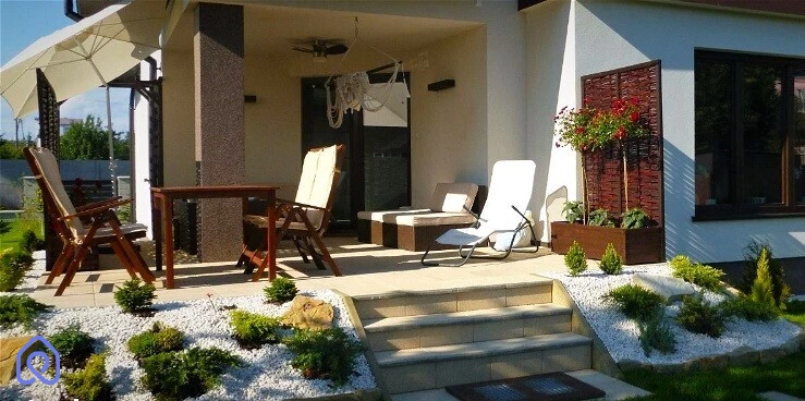 Nasadzenia i trawnik nawadniane są systemem sterowanym automatycznie.