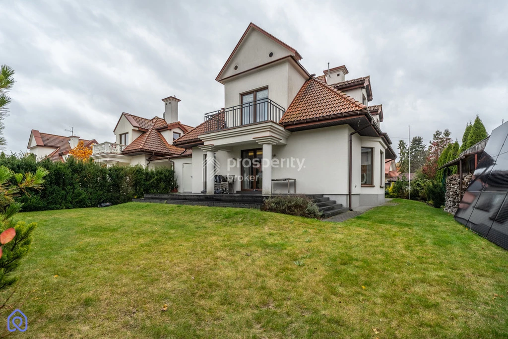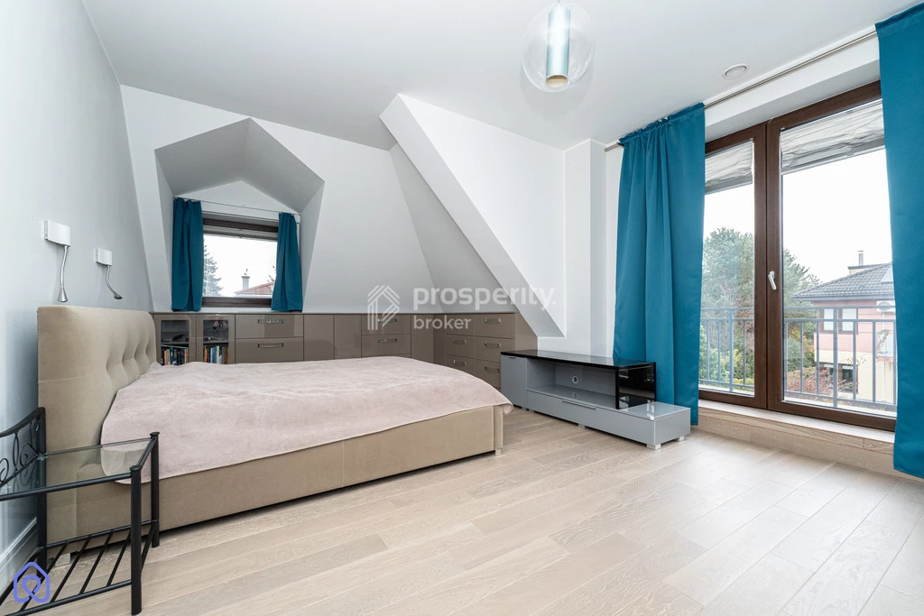 - Na piętrze: sypialnia master z garderobą, 2 pokoje, 2 łazienki (w jednej sauna fińska).
