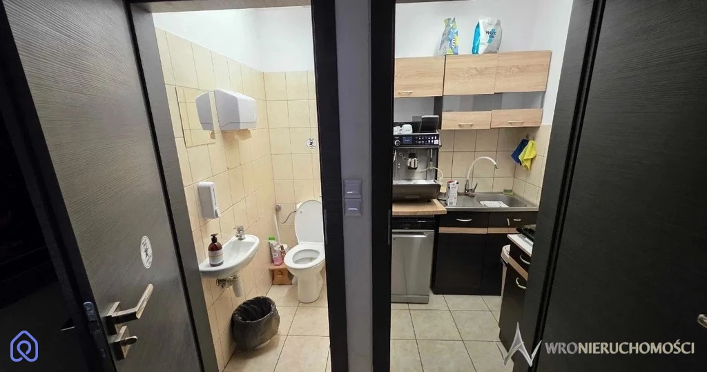 pomieszczenia biurowe, kuchnia, jadalnia, toalety na każdym poziomie