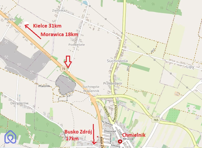 Stąd do Kielc jest 37km, do Morawicy 18km, do Buska Zdroju 17km.