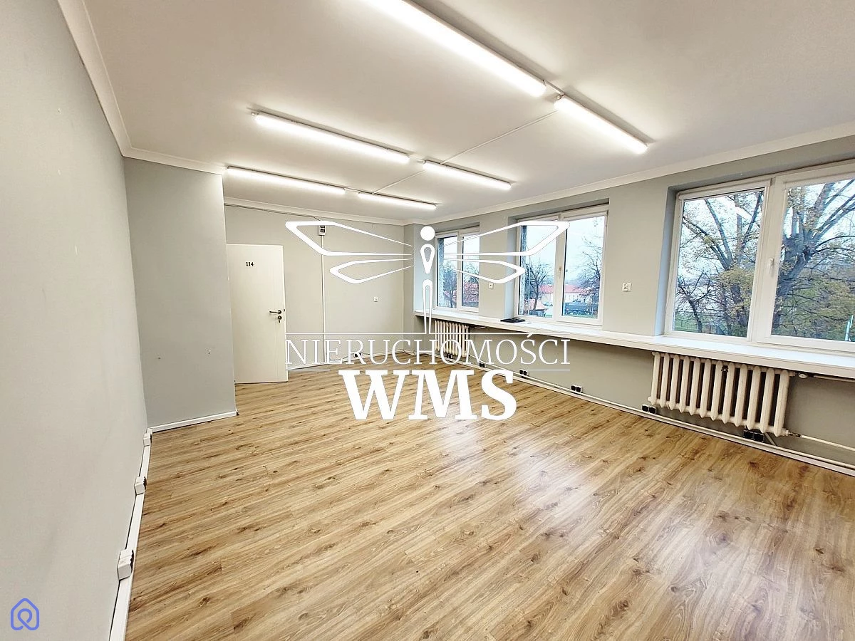 Toaleta wspólna na piętrze. Lokal posiada okna na całej ścianie co sprawia, że w środku jest słonecznie. Poprzednio wynajmowany m.in. przez szkołę i służyła jako sala informatyczna oraz jako biuro nieruchomości.