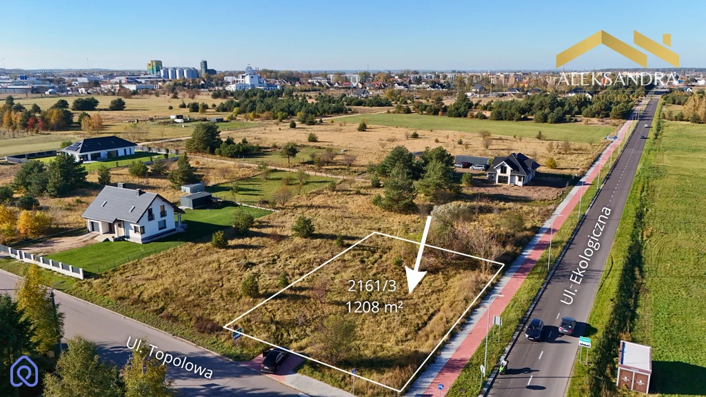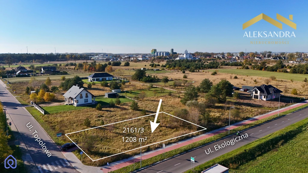 Nieruchomość posiada bezpośredni wjazd z ul. Topolowej (drogi gminnej). Dodatkowo działka graniczy z ul. Ekologiczną, co umożliwia dostęp do ścieżki pieszo-rowerowej.