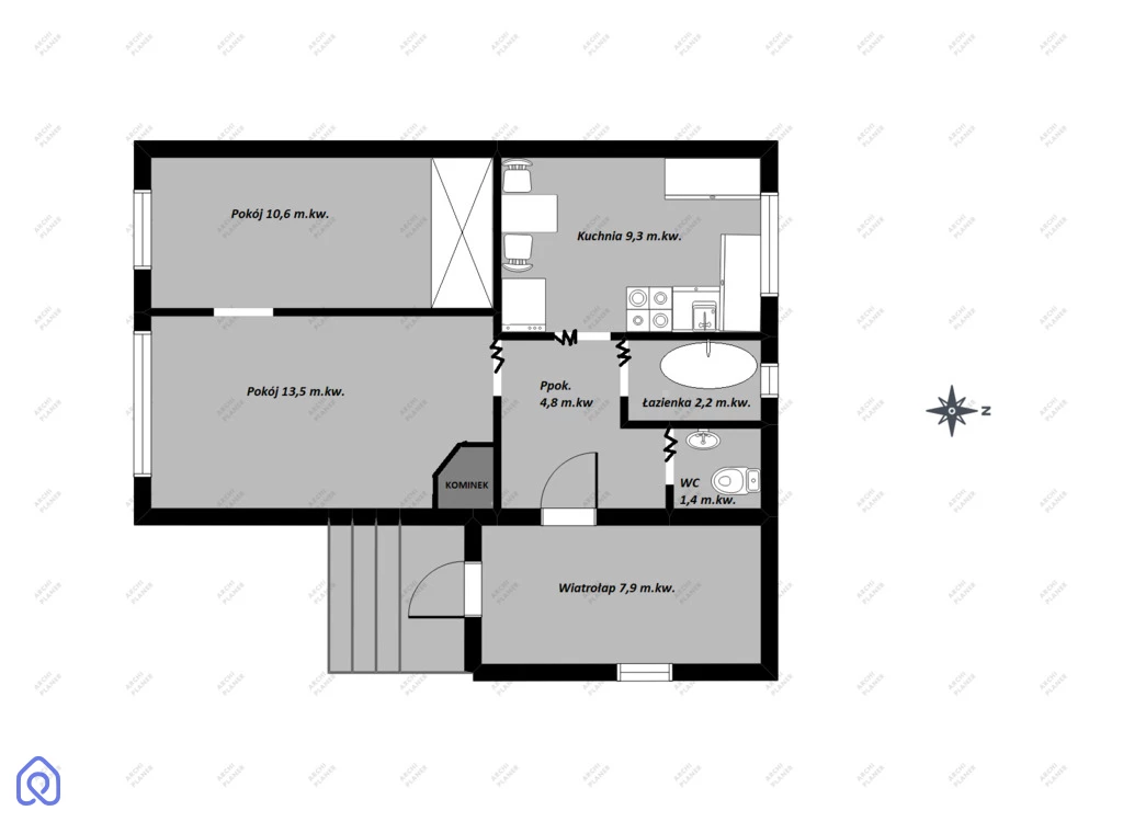 -pokój główny z kominkiem,