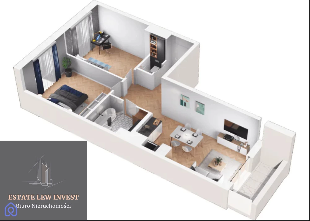 Przemyślany układ: Mieszkanie zaprojektowano tak, aby maksymalnie wykorzystać przestrzeń. Dwa oddzielne pokoje zapewniają komfort i prywatność.